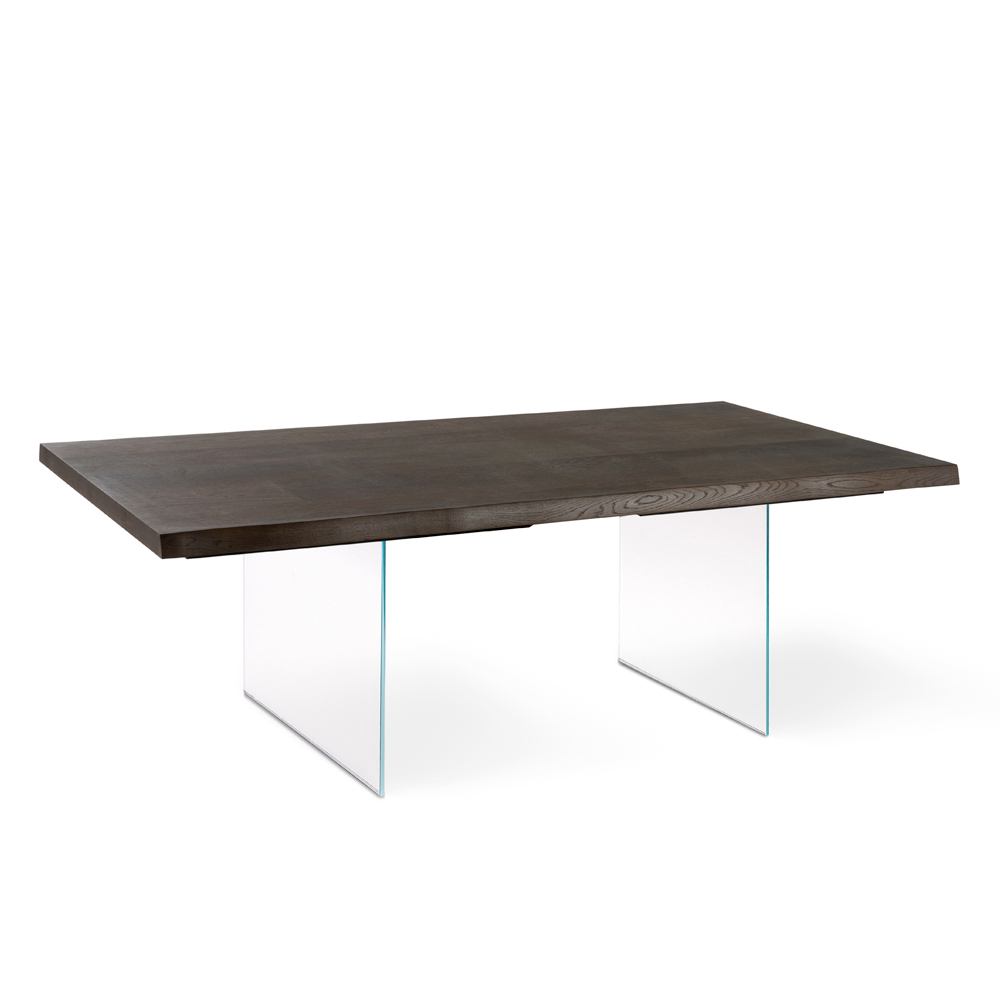 Tento stůl díky povrchové úpravě nohou vypadá jako kus nábytku vznášející se ve vzduchu zavěšený v atmosféře místnosti. Je to produkt, který v sobě nachází kontrast mezi lehkostí skla a masivností dřeva a vytváří stůl, který se dokonale přizpůsobí jakémukoli stylu nábytku, ať už modernímu, průmyslovému nebo současnému.