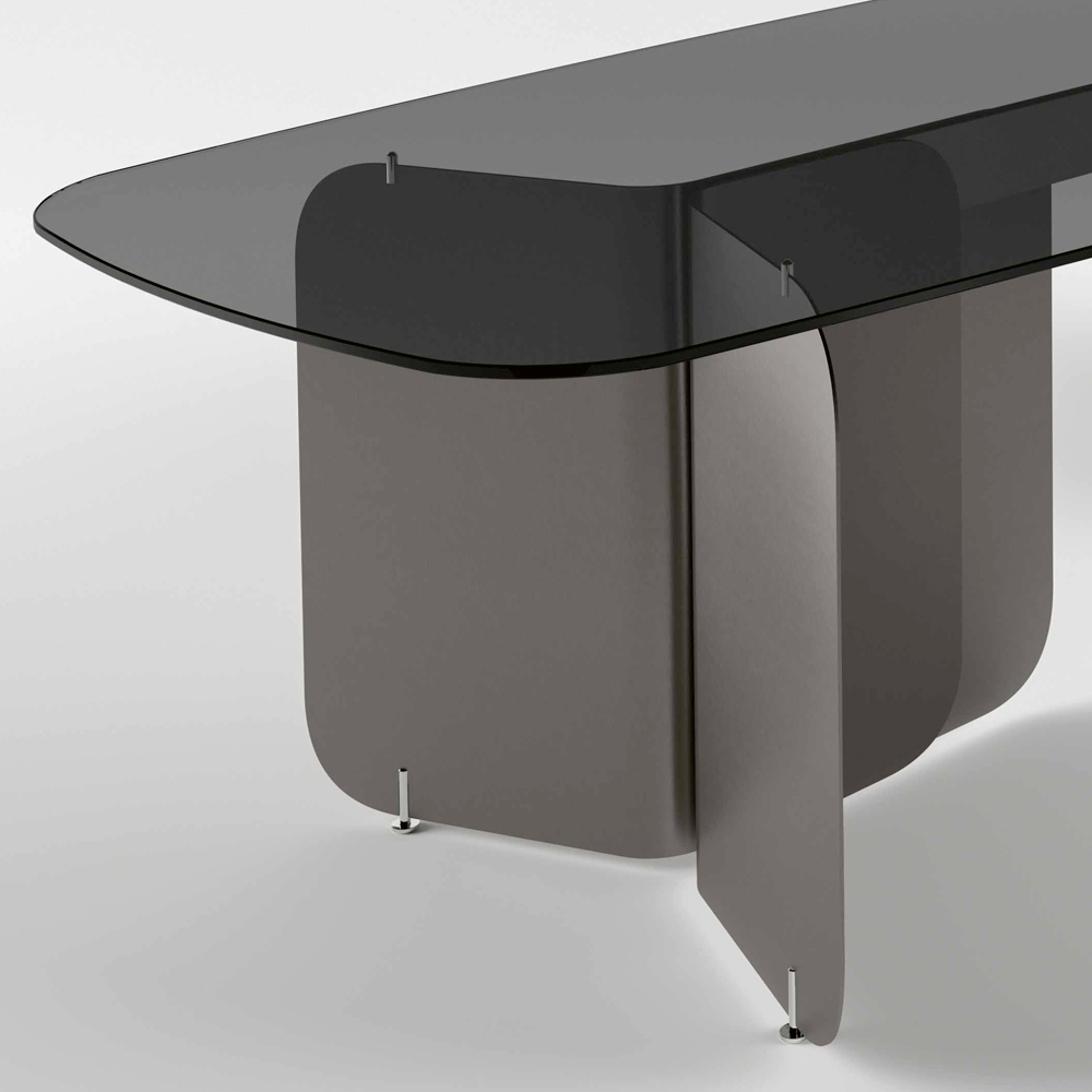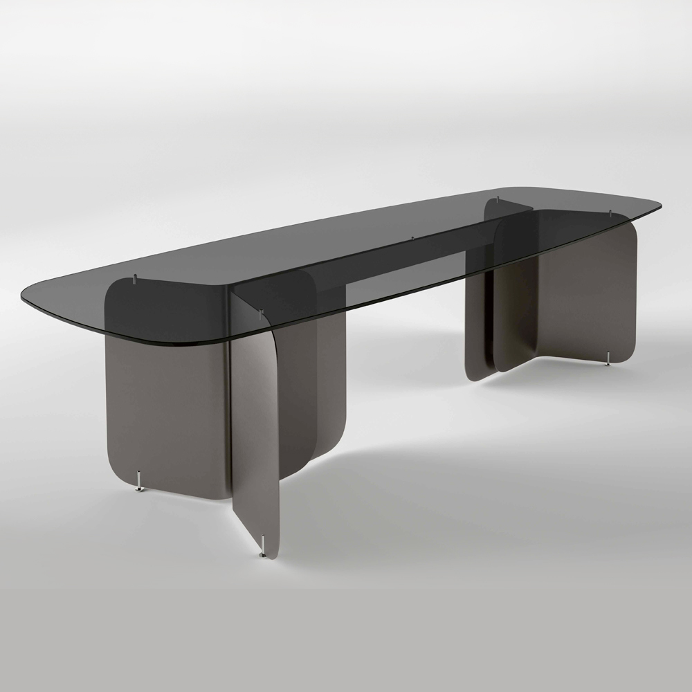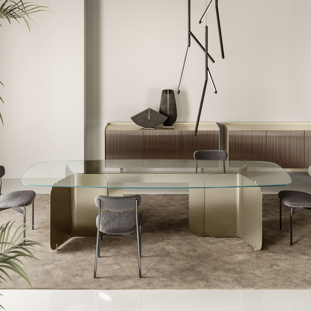 Zakřivené kovové základny s hladkým, plynulým tvarem propůjčují robustní stabilitu a zároveň dodávají nádech moderní sofistikovanosti . Díky tomuto designu je stůl ideální jako středobod v jídelně i jako pracovní stůl v pracovně nebo domácí kanceláři, nabízí skvělý vizuální dojem a maximální funkčnost.