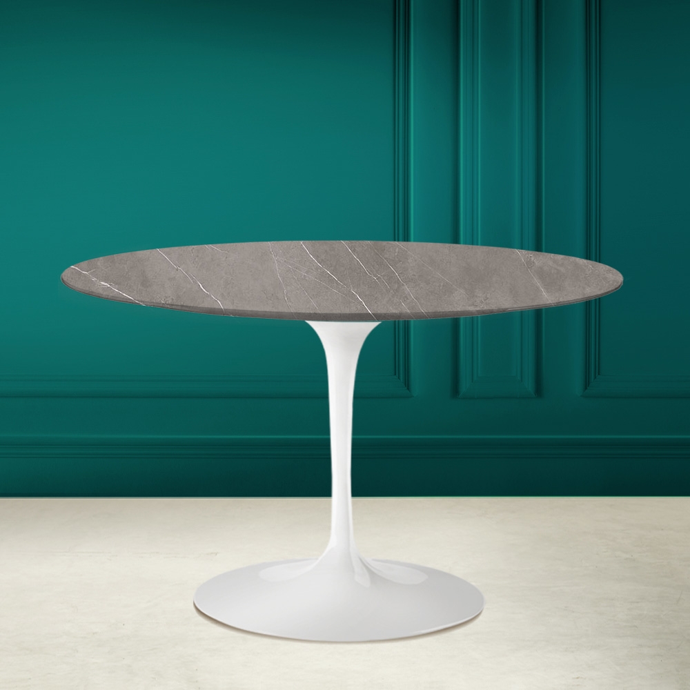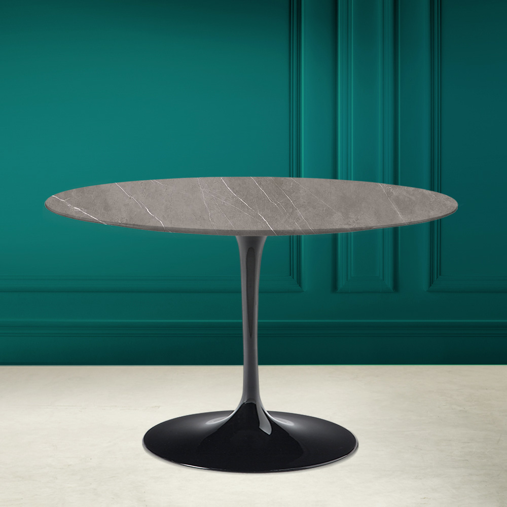Jídelní stůl z šedé kamenné keramiky a leštěného hliníku Made in Italy