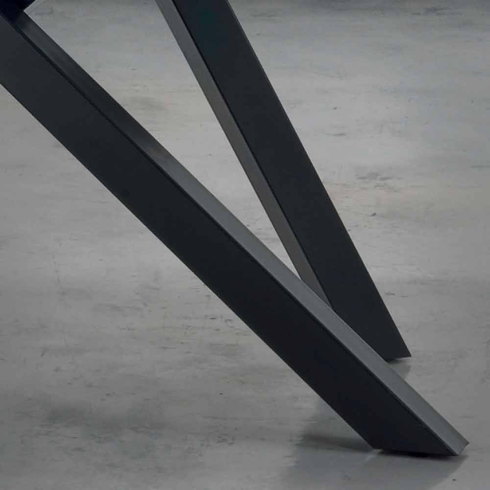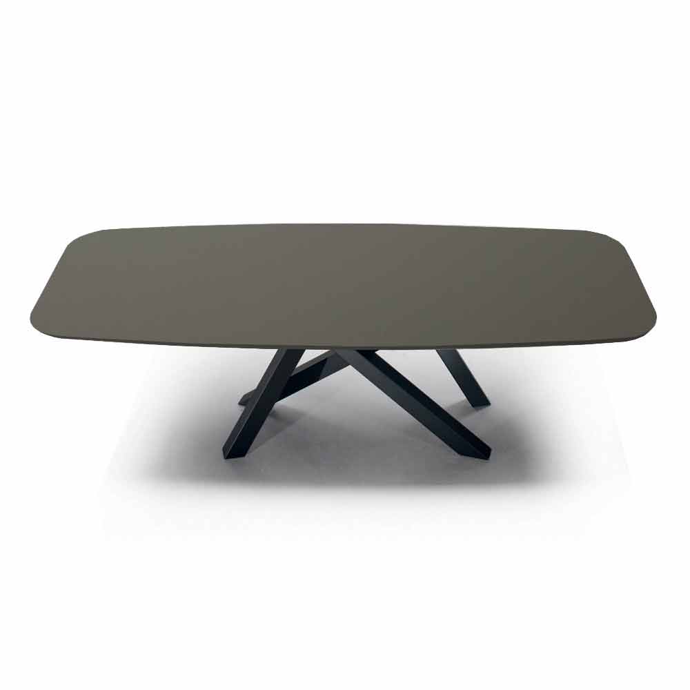 Jídelní stůl ve tvaru sudu vyrobený v Itálii z jemného fenixu a lakované oceli.