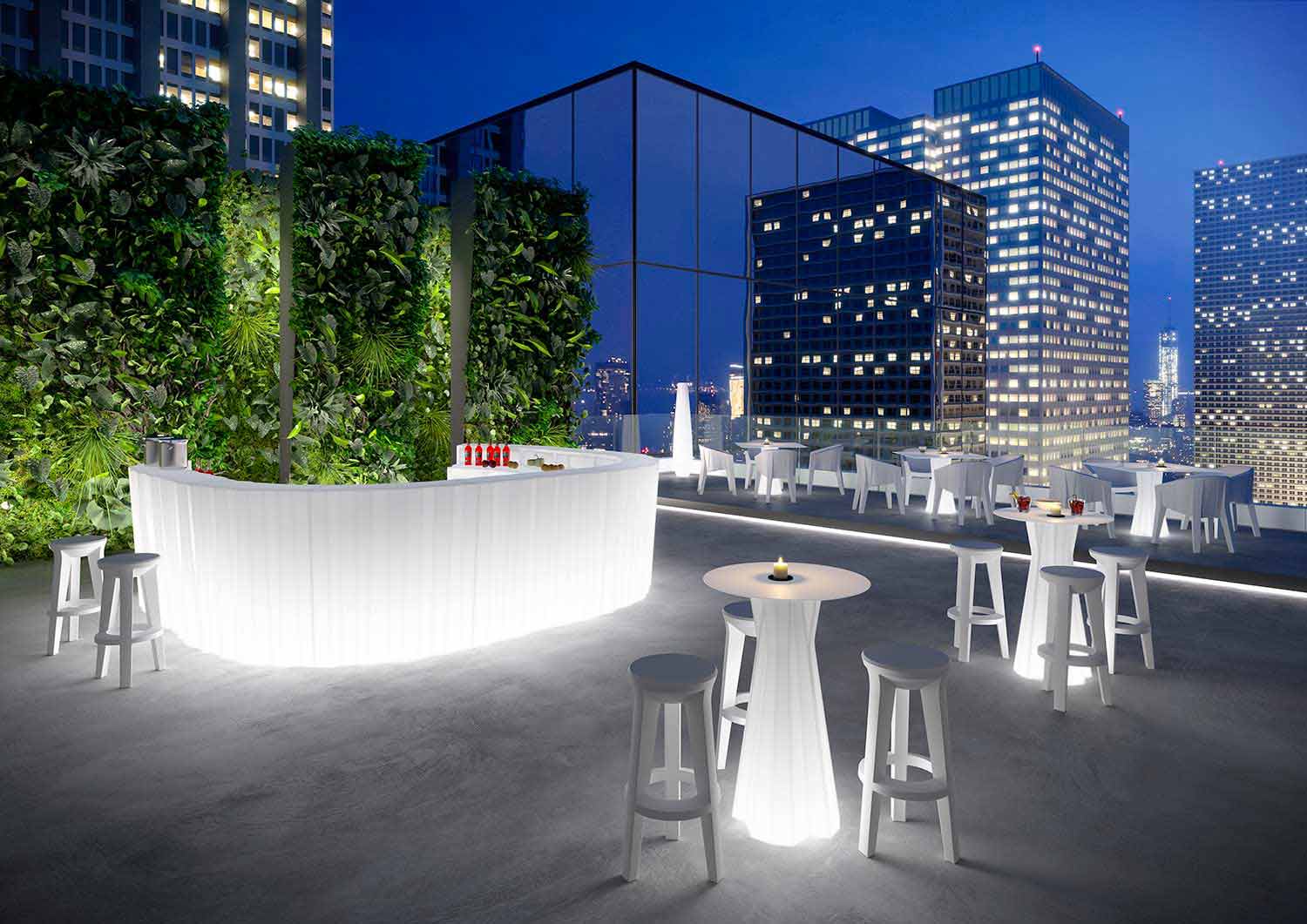 polyethylenu , který poskytuje všestrannost a odolnost vůči teplu, slunci a nárazům. Ideální v kombinaci s jasnými vysokými stoličkami k doplnění vybavení prostředí, která vyžadují charakter a osobnost.