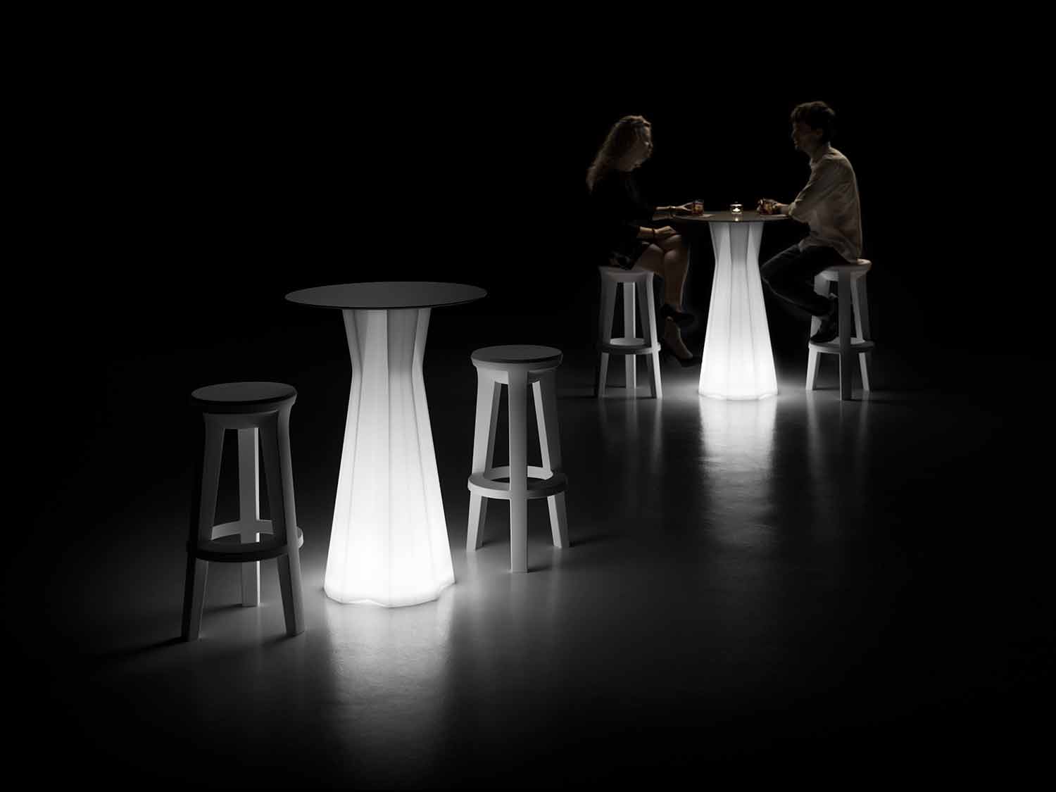 Vysoce designový venkovní stůl z HPL a polyethylenu s LED diodou LED Made in Italy.