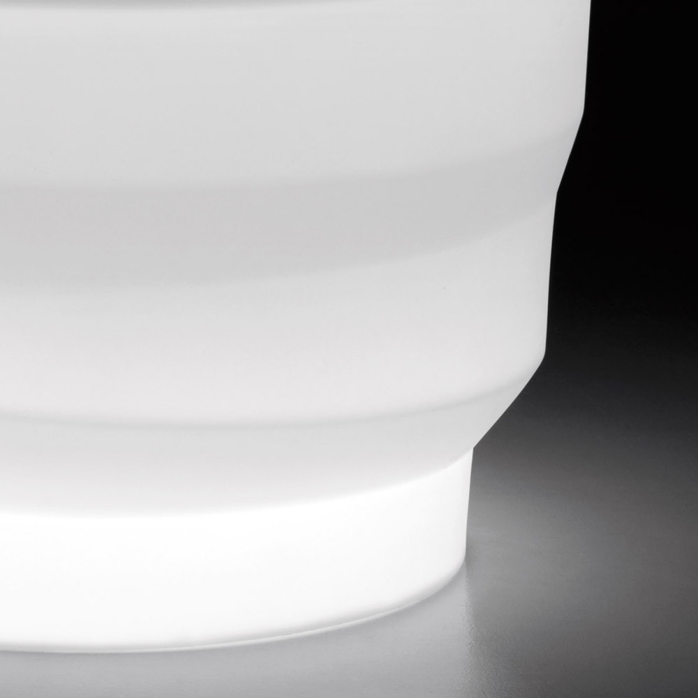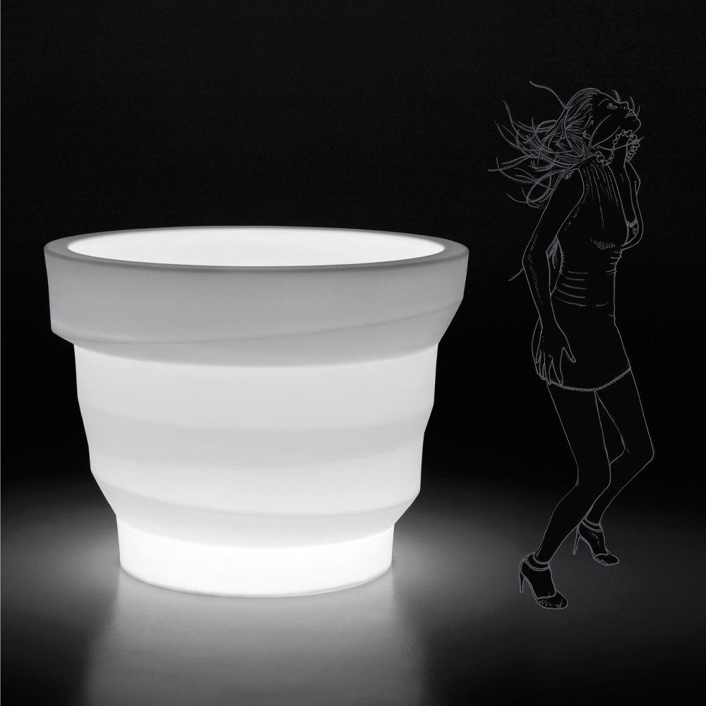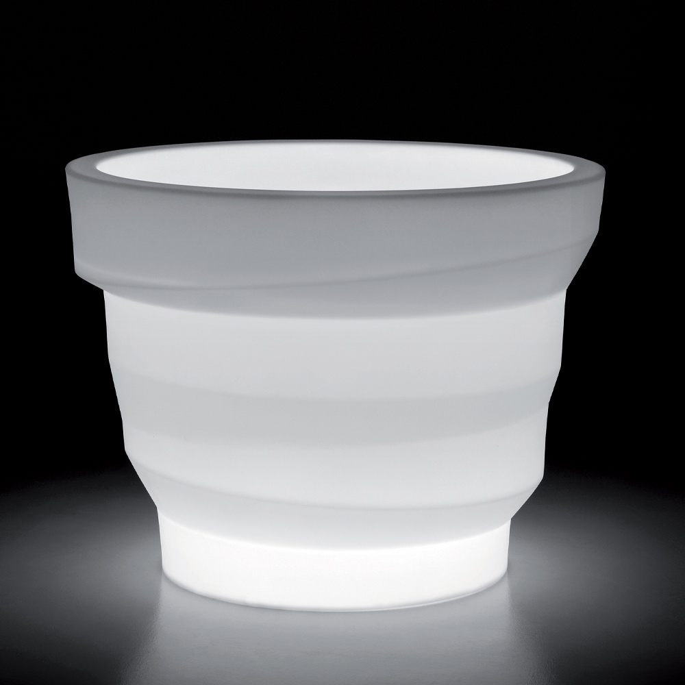 Venkovní svítící váza z neprůhledného polyetylenu s LED vyrobena v Itálii.