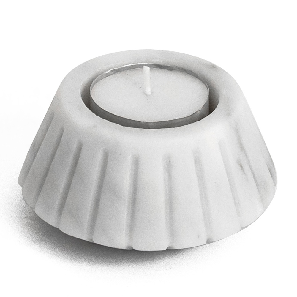 Svícen ze saténového mramoru různé povrchové úpravy, 2 kusy vyrobené v Itálii.