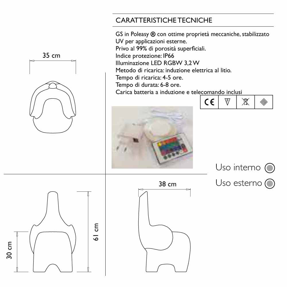 Symbolická hodnota a funkčnost se spojily a vytvořily objekt, který může potěšit malé i velké. Inspirován slonem, ikonickým symbolem a přináší štěstí, je Tino pohodlnou sedačkou pro děti. Aby se zdůraznila jeho hravost, sada RGB s indukčním dobíjením, které uvolňuje představivost mladých i starých, díky barevným hrám, které lze ovládat na dálku pomocí dálkového ovládání.
