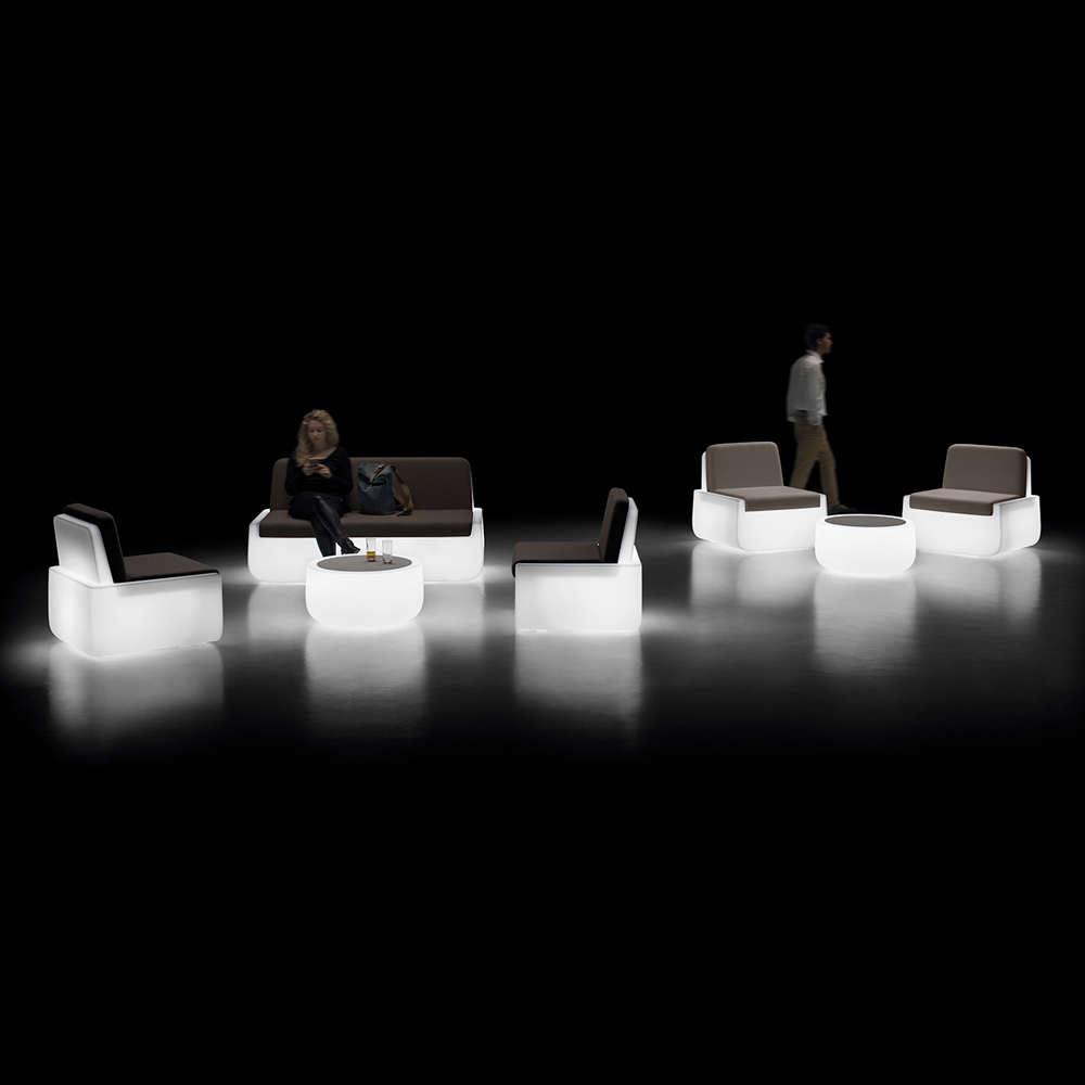 vyrobené v Itálii , se vyznačuje měkkými liniemi a obzvláště pohodlným širokým a hlubokým sedákem. Díky osvětlení pomocí LED světla je produkt vylepšen měkkým světlem, které vytváří příjemnou atmosféru vhodnou pro vybavení venkovních relaxačních prostor.