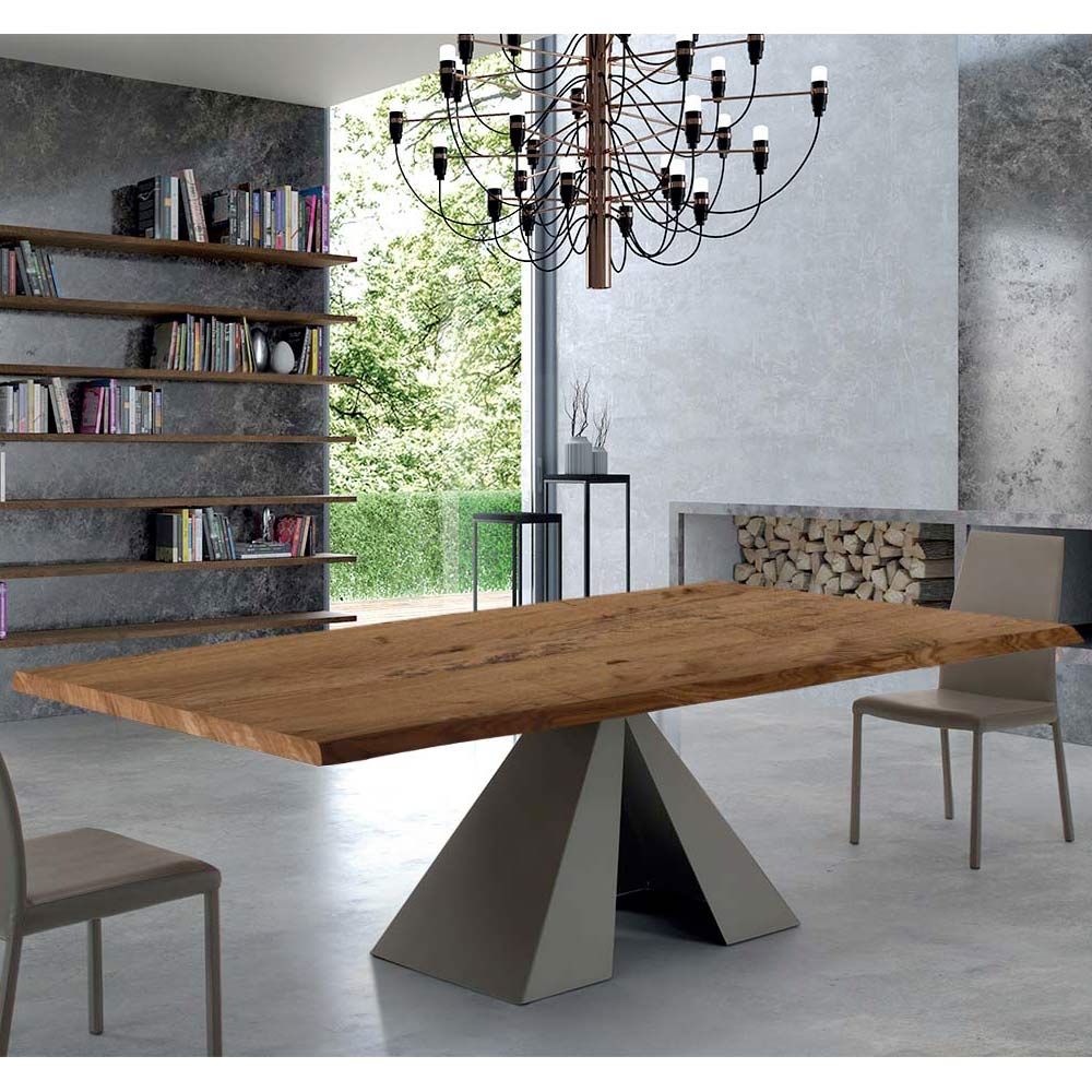 Jídelní stůl Dalmata je ideální pro vytváření inovativních, moderních a funkčních projektů zařízení. Ručně vyráběné v Itálii z vysoce kvalitních materiálů a 100% vyrobeno v Itálii. Skládá se z dýhované dřevěné desky s nepravidelným odkorněným okrajema ocelová základna lakovaná norkem.