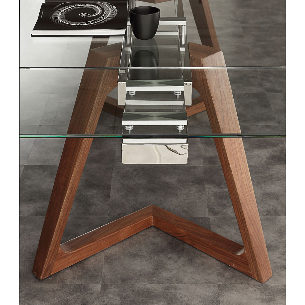 Tento rozkládací stůl je kvintesence elegance a praktičnosti , skutečné umělecké dílo moderního designu. Krystalická průhlednost horní desky z tvrzeného skla umožňuje pohled na krásu základní struktury, dokonalou kombinaci funkčnosti a stylu, která okouzlí každého.