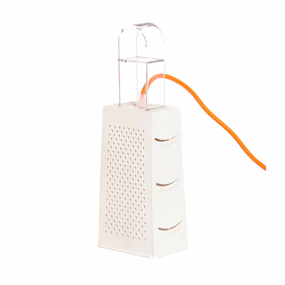 - průhledný červený kabel;