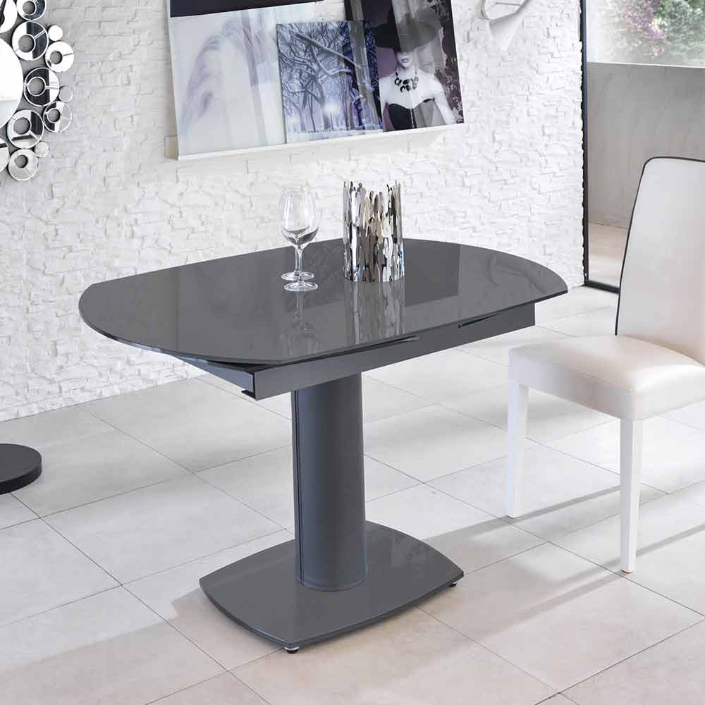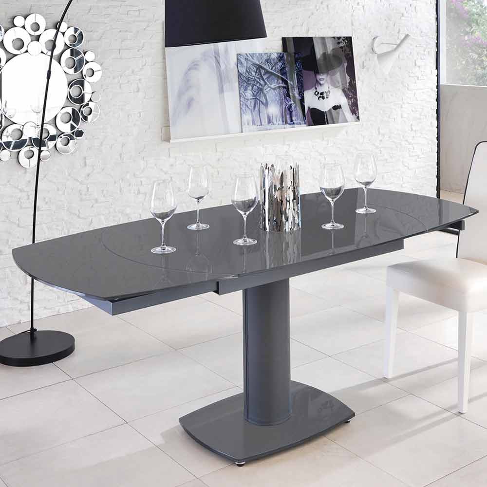 Leila je rozkládací stůl s moderním designem s podstavcem, deskou a nástavci z tvrzeného skla. Charakteristickým rysem tohoto stolu je kovový sloupek potažený imitací kůže. Díky praktickým nástavcům je možné mít povrch dlouhý 180 cm.