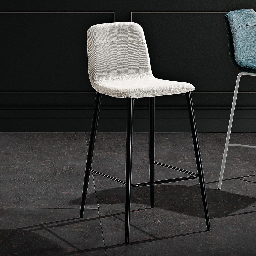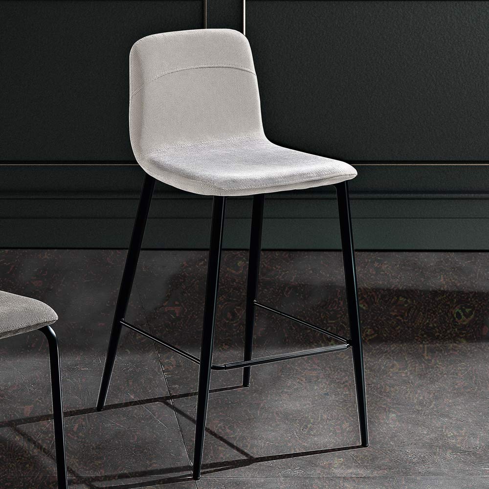 Kuchyňská stolička se sedákem potaženým látkou a kovovým rámem s kulatou trubkou (průměr 16 mm) v matné antracitové úpravě RAL 7021 doplněná praktickou podnožkou, vyrobeno v Itálii.