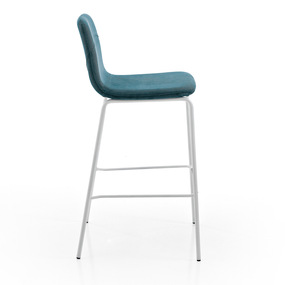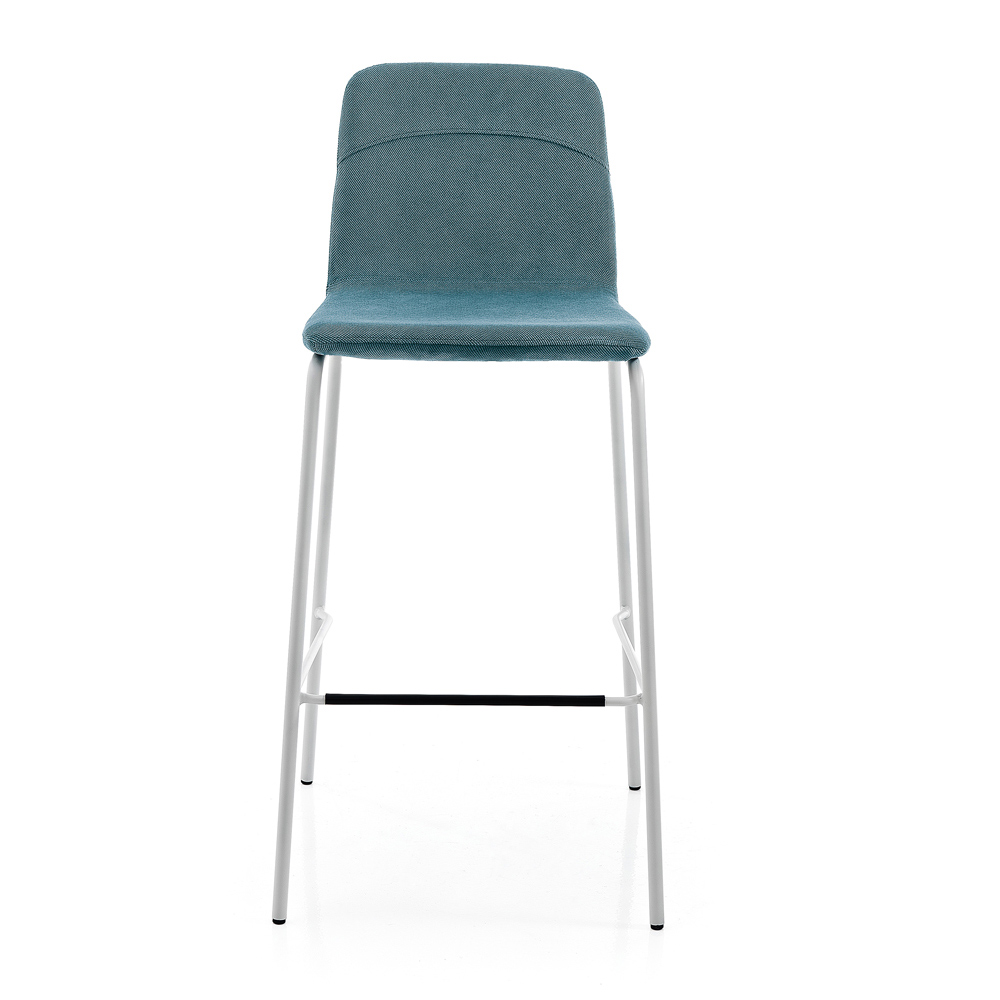 Vysoká kuchyňská taburetka vyrobená v Itálii s kulatou trubkovou kovovou konstrukcí (průměr 16 mm) doplněná praktickou podnožkou a sedákem potaženým látkou . Funkční a nadčasový design , vhodný pro ty, kteří chtějí vytvořit příjemné prostředí s jemnými odstíny.