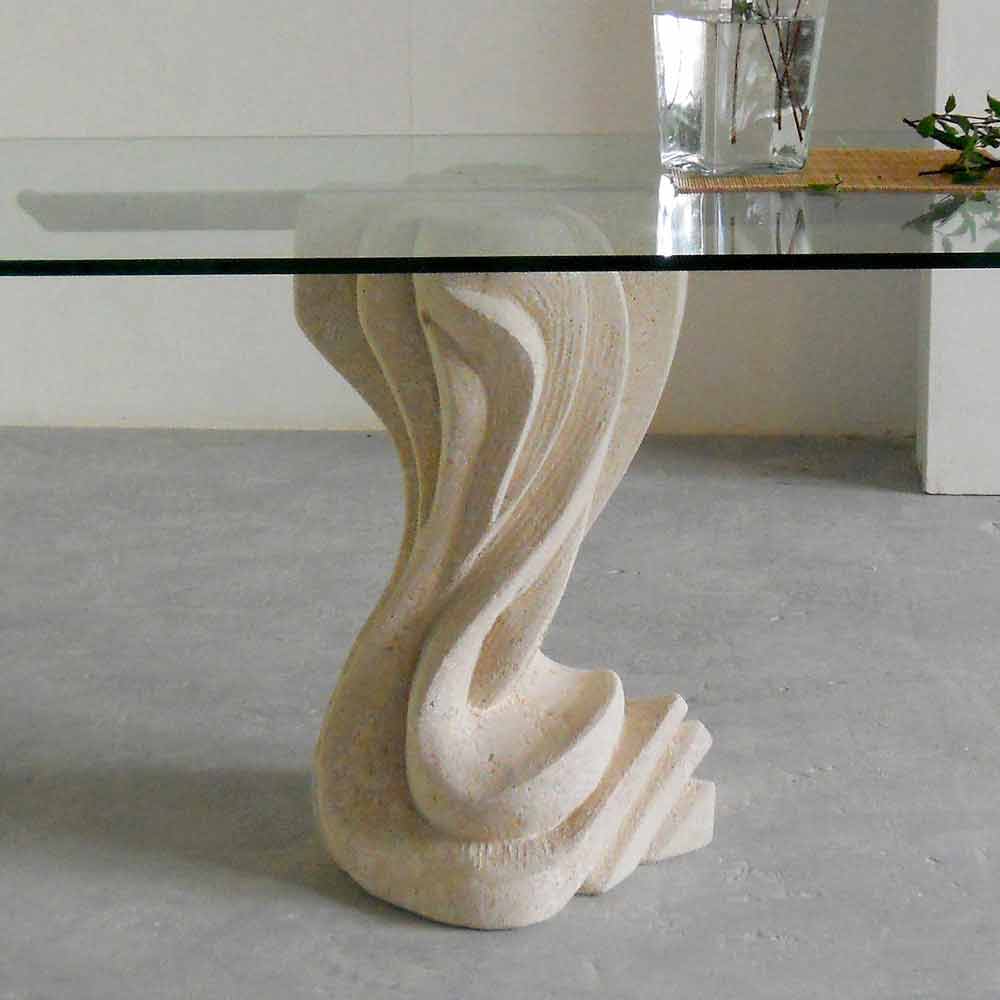 Oválný jídelní stůl z kamene a skla moderního designu Agave