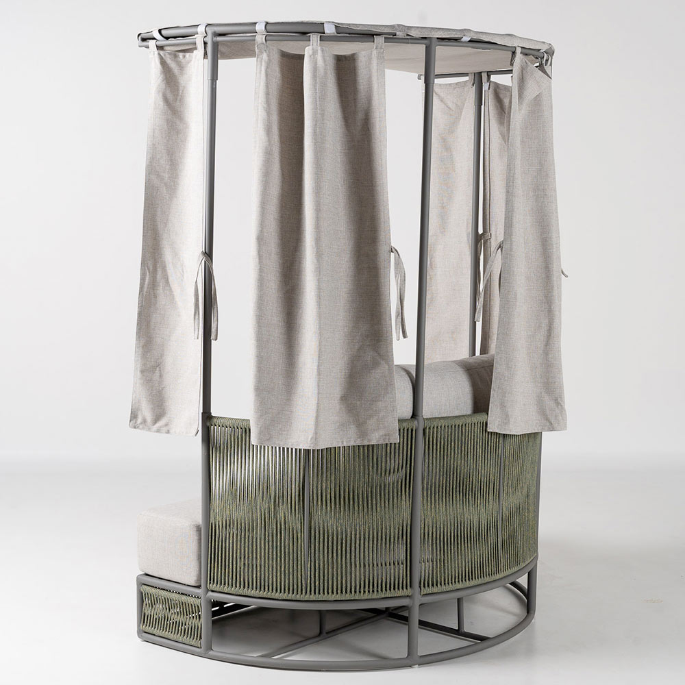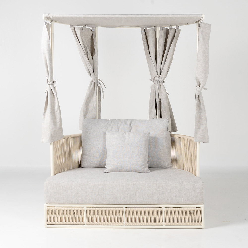 Tato denní postel, ideální pro terasy, zahrady, hotely nebo obývací prostory, vás zve k užívání si venkovního prostředí stylově: do prostoru věnovaného pohodě, relaxaci a potěšení z pobytu venku.