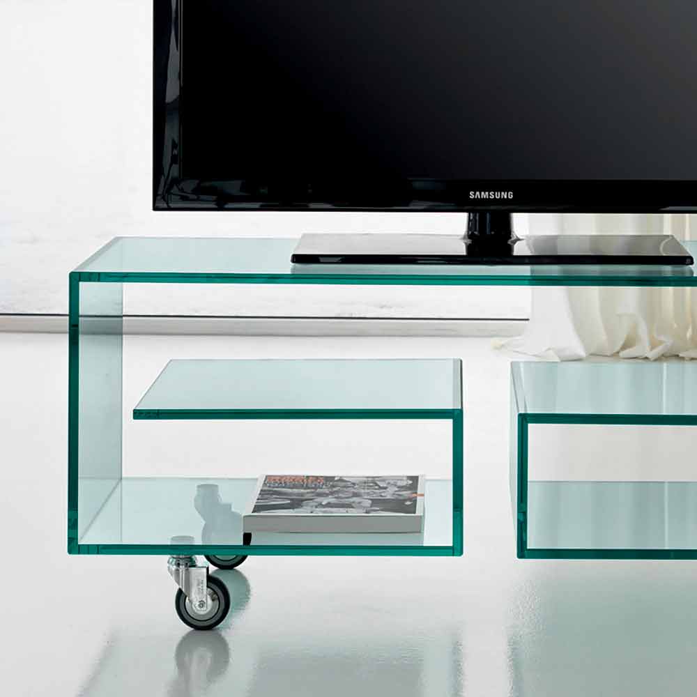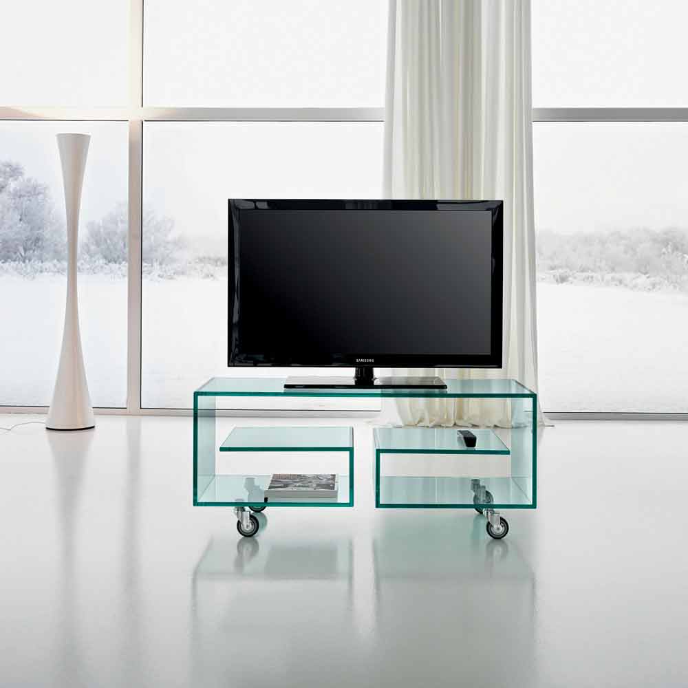 Tato televizní skříň do obývacího pokoje se vyznačuje svým sochařským a originálním designem zcela vyrobeným z průhledného skla o tloušťce 15 mm.