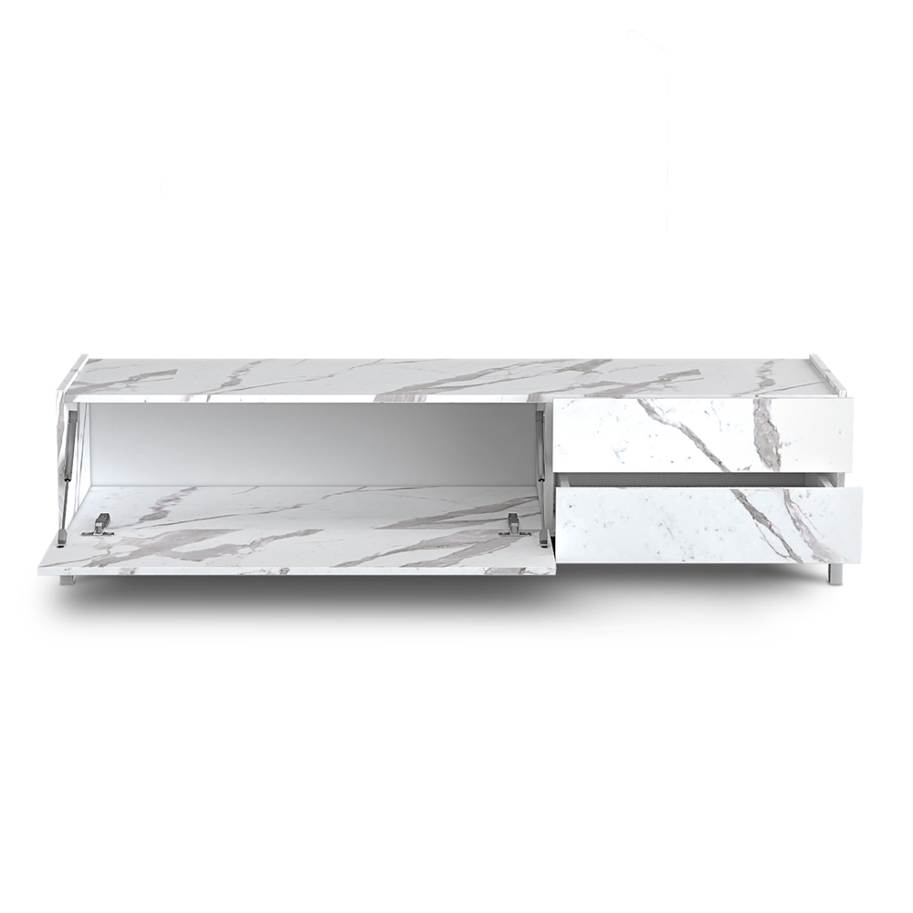 Dřevěný TV stolek s 1 skládacími dvířky a 2 zásuvkami