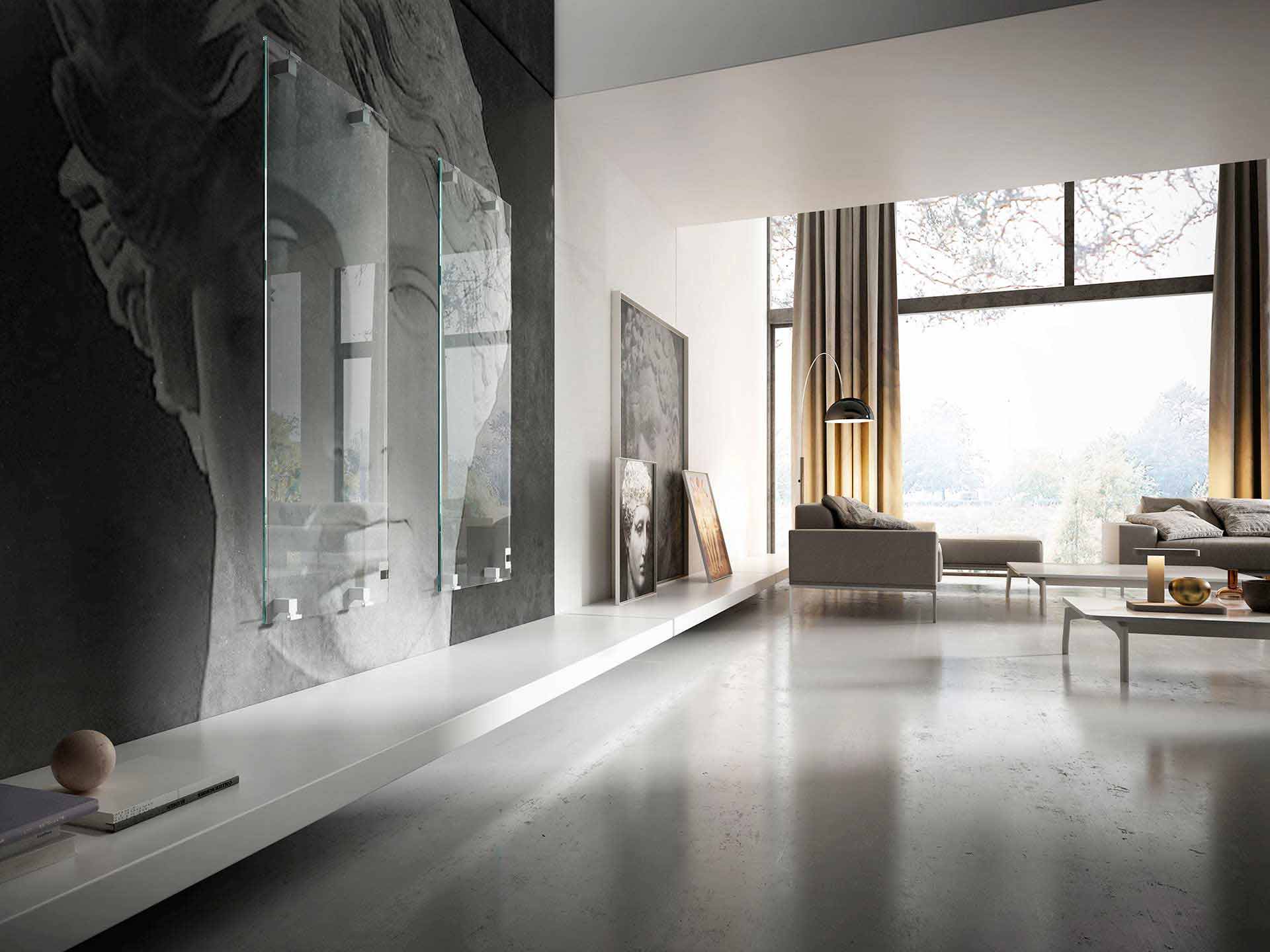 sálavých panelů ve skle na elektrickou a infračervené ozařování síly. To představuje vysoké estetické řešení dopadů, aby se zajistilo dokonalé spojení mezi efektivitou a elegance. Jedná se o