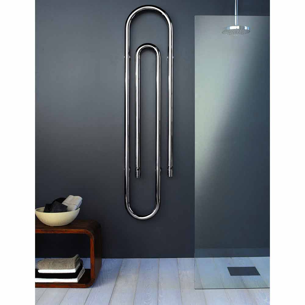 Radiátor ve tvaru horizontální chromované kancelářské sponky v hydraulickém provedení s moderním a zábavným designem. Tématem je rozšiřování tvaru předmětů každodenní potřeby a změna jejich funkce ve hře okamžitého poznání a příjemnosti. K dispozici v různých velikostech, vyberte si tu, která vám nejlépe vyhovuje!