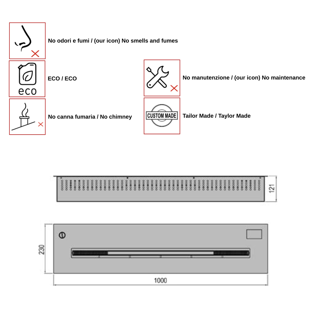 Aron 100 lze vložit do jakéhokoli prostředí, což je více emocionální a teplé. Toto krásné leštěné nerezové oceli lineární hořák je vhodný pro vložení na ploché povrchy nebo stěn krbů.