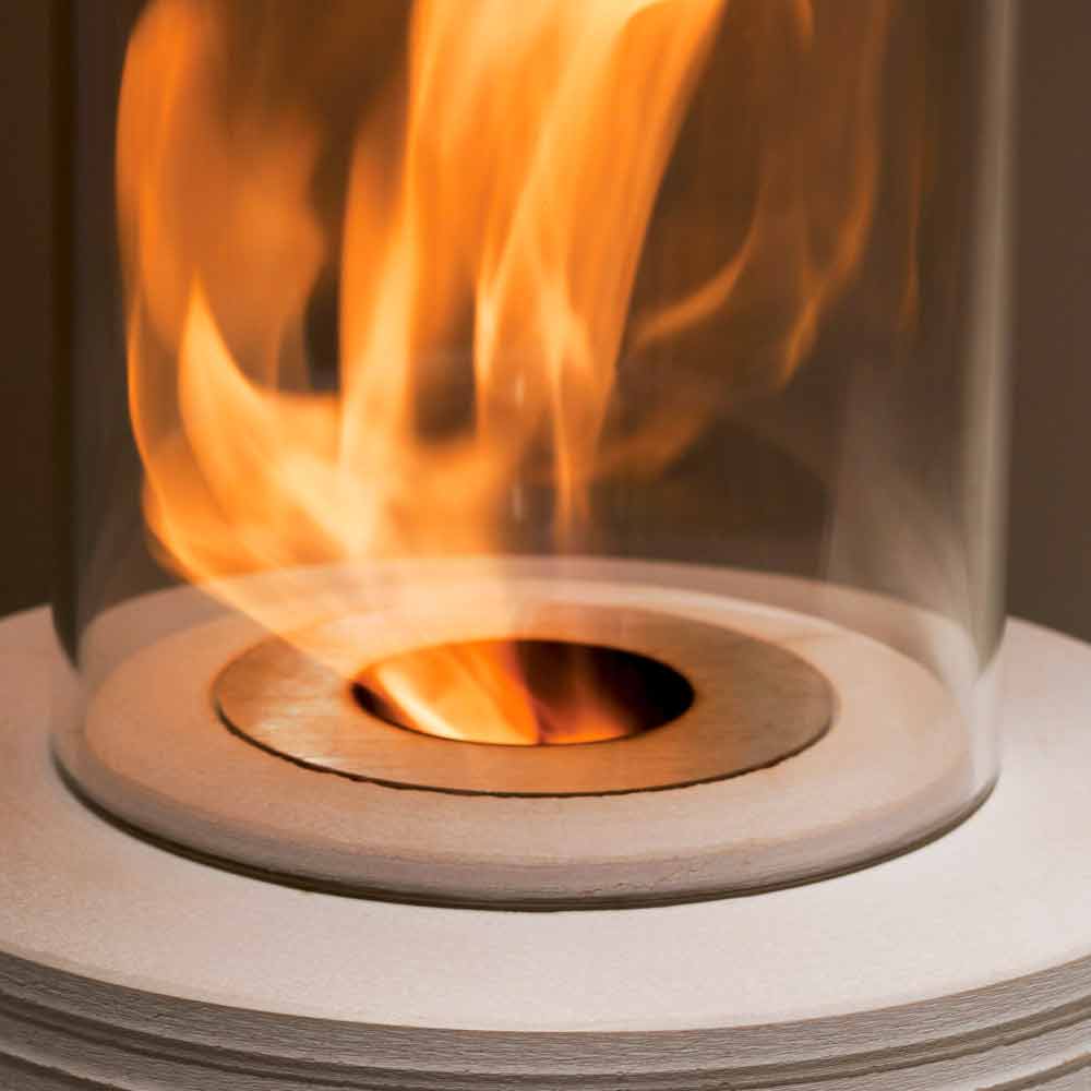 Tento krásný biocamino je také včetně blatníku z borosilikátového skla, které se podobá elegantní skleněné trubice, která obsahuje plamen sám.