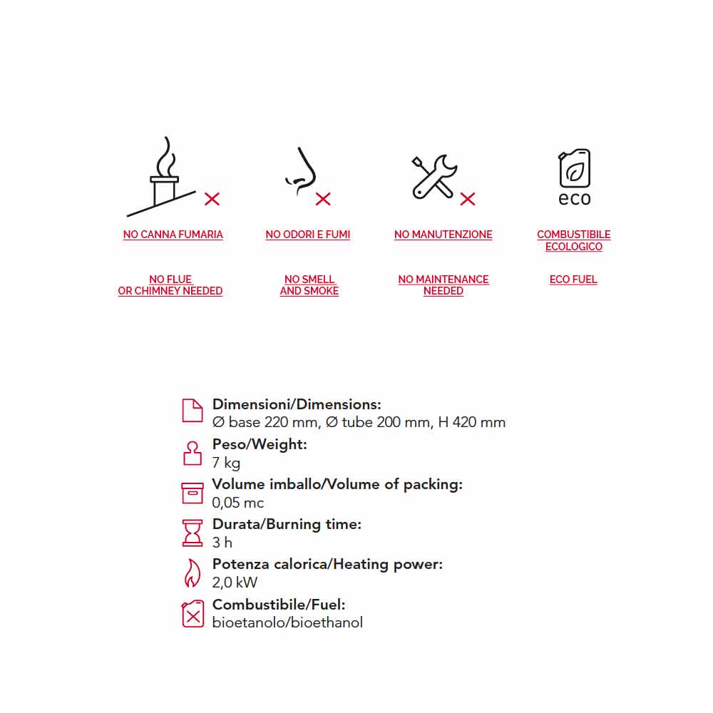 Hlavní Zvláštností tohoto krbu spočívá v jeho charakteristiky z neprodukuje dýmy a výpary, kromě nevyžaduje kouřovodu. Ekologické krb, který nepotřebuje údržbu, jak sytém bioetanolu, obnovitelný zdroj energie.