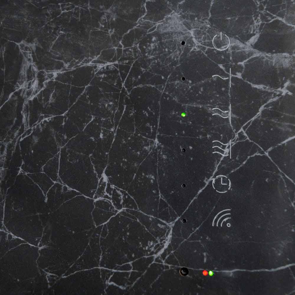 4- Bezpečnost : Díky zabudování z tvrzeného skla se může pochlubit nejvyšší certifikací pro bezpečnostní sklo. Konstrukce vkládá přilnavou plastovou fólii, která umožňuje sklu získat evropskou certifikaci B1 s vlastnostmi stejnými jako u nerozbitného vrstveného skla. Speciálně navržené držáky zabraňují po instalaci výrobku neúmyslnému uvolnění v souladu s německými bezpečnostními předpisy pro radiátory. Tento elektrický radiátor také umožňuje zvolit nízkou povrchovou teplotu (50 °C), abyste se vyhnuli kontaktu s příliš vysokými povrchy pro děti nebo starší osoby, které by se jich mohly dotýkat nebo se o ně nechtěně opřít.