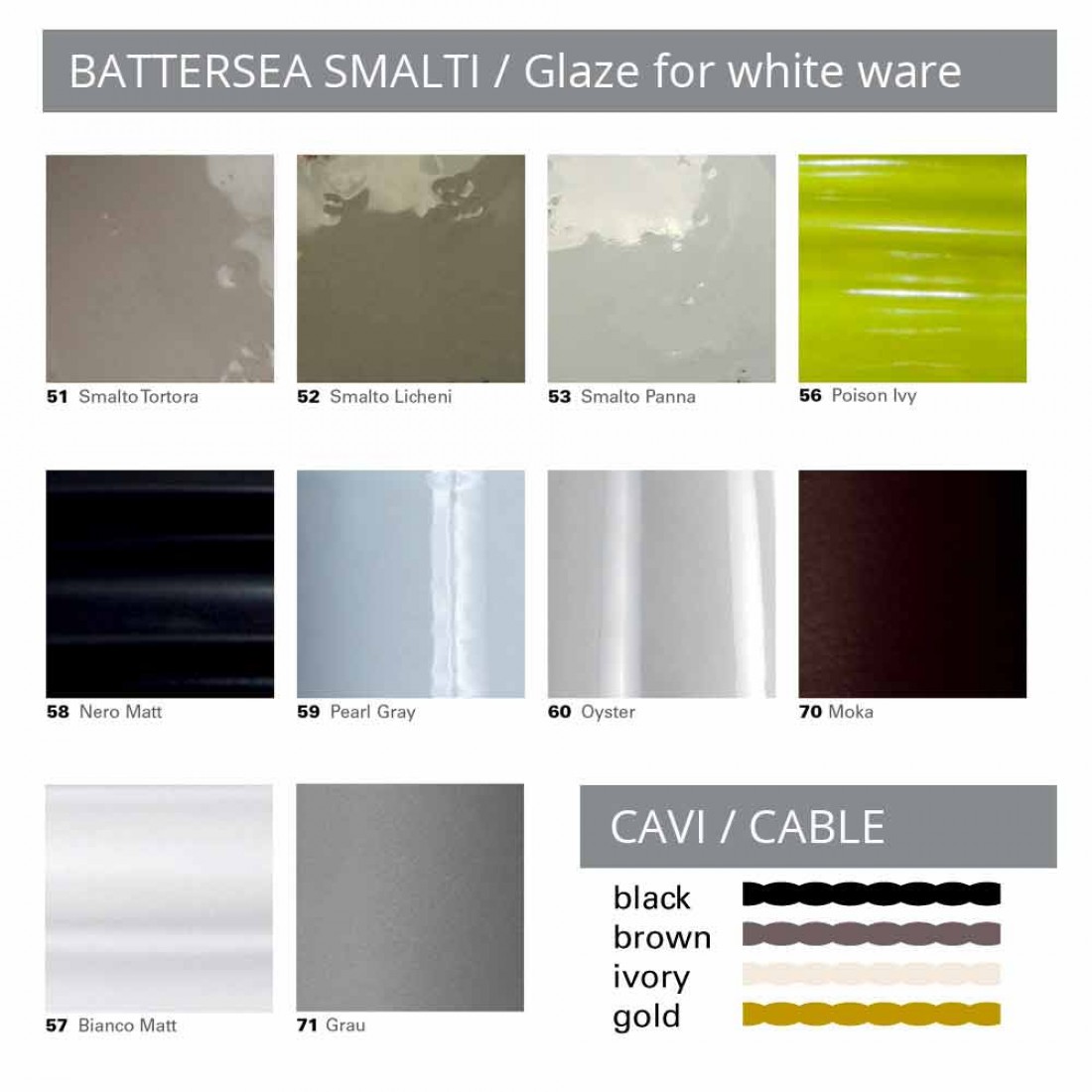 Kromě možnosti volby vnější povrchové úpravy keramiky je tedy možné zvolit i povrchovou úpravu elektrického kabelu. Vyjádřete svou kreativitu výběrem povrchových úprav, které preferujete!