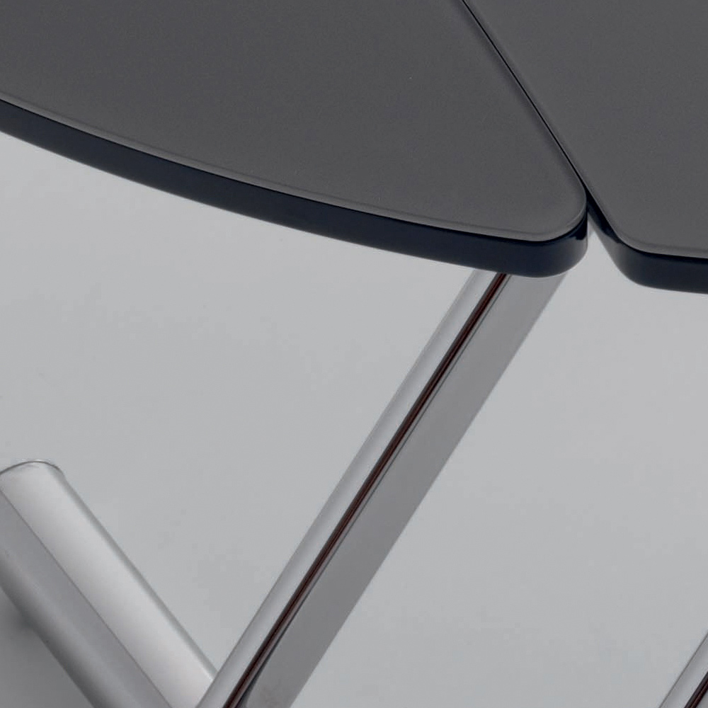 Konferenční stolek, kovová základna a skleněná deska, vyrobený v italském designu.