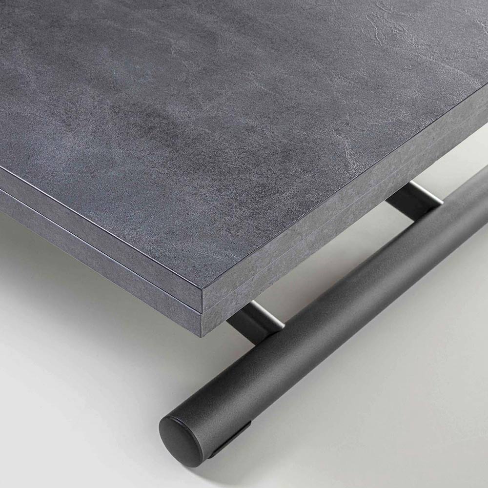 antracitové povrchové úpravě . Zvláštností tohoto jedinečného a inovativního konferenčního stolku je jeho struktura, která umožňuje jeho rychlou a snadnou transformaci na praktický jídelní stůl. Tato funkce maximalizuje svou
