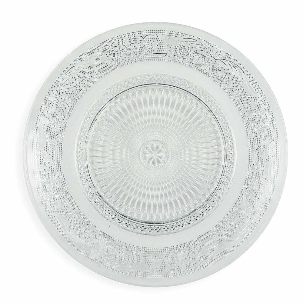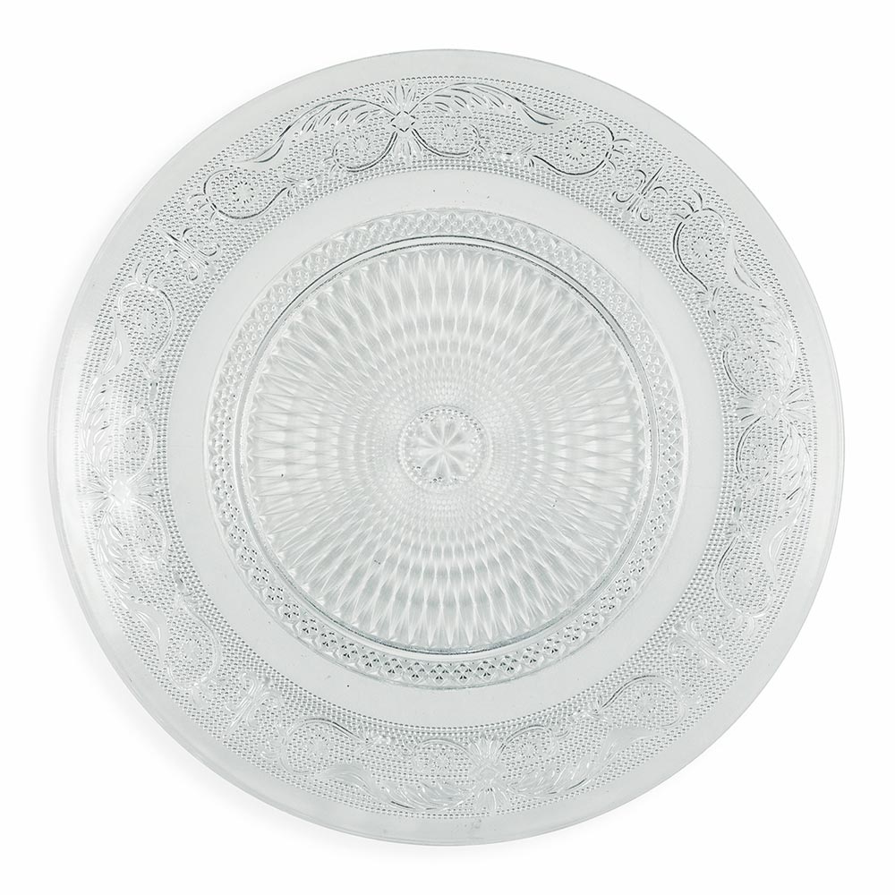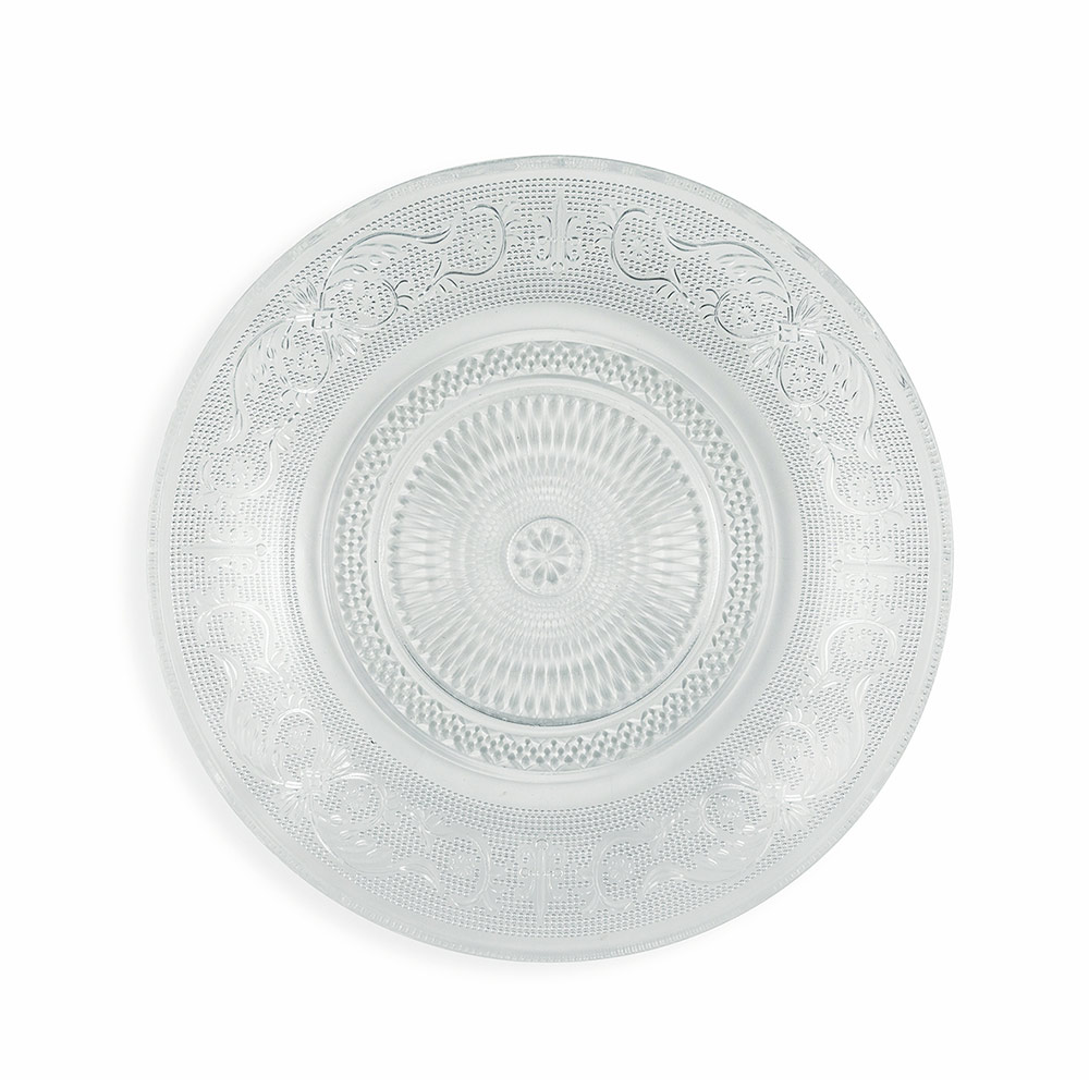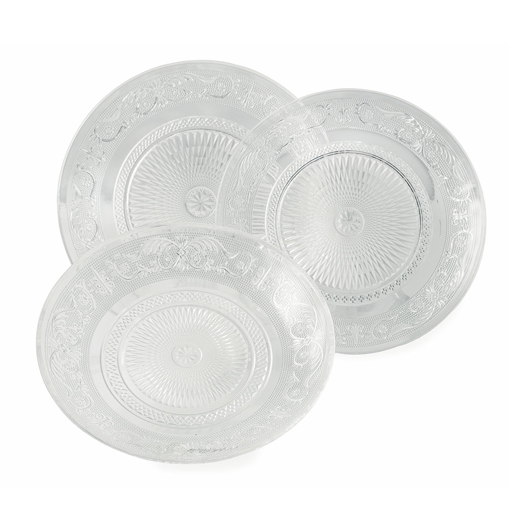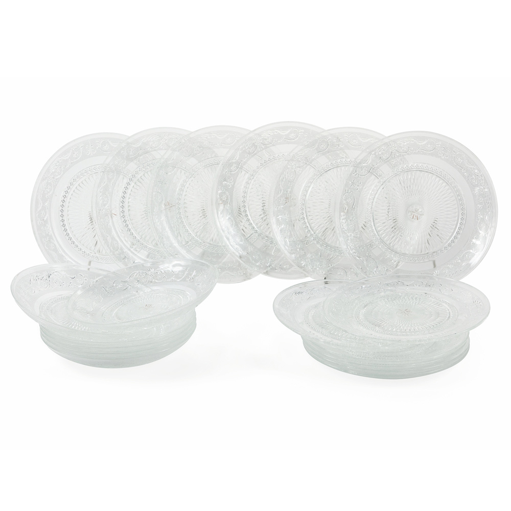 Sada 18dílných dekorovaných transparentních skleněných talířů.