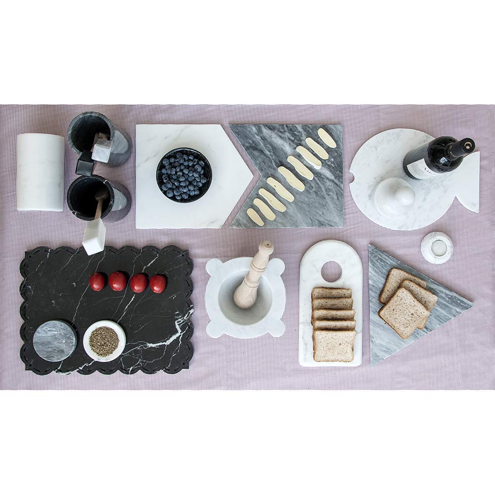 Bílý carrarský mramor používaný k výrobě těchto produktů pochází z lomu Poggio Silvestre, zdroje prvotřídního mramoru klasifikovaného od minulého století. Každý produkt je také ručně vyráběn profesionály specializovanými po generace na zpracování mramoru.