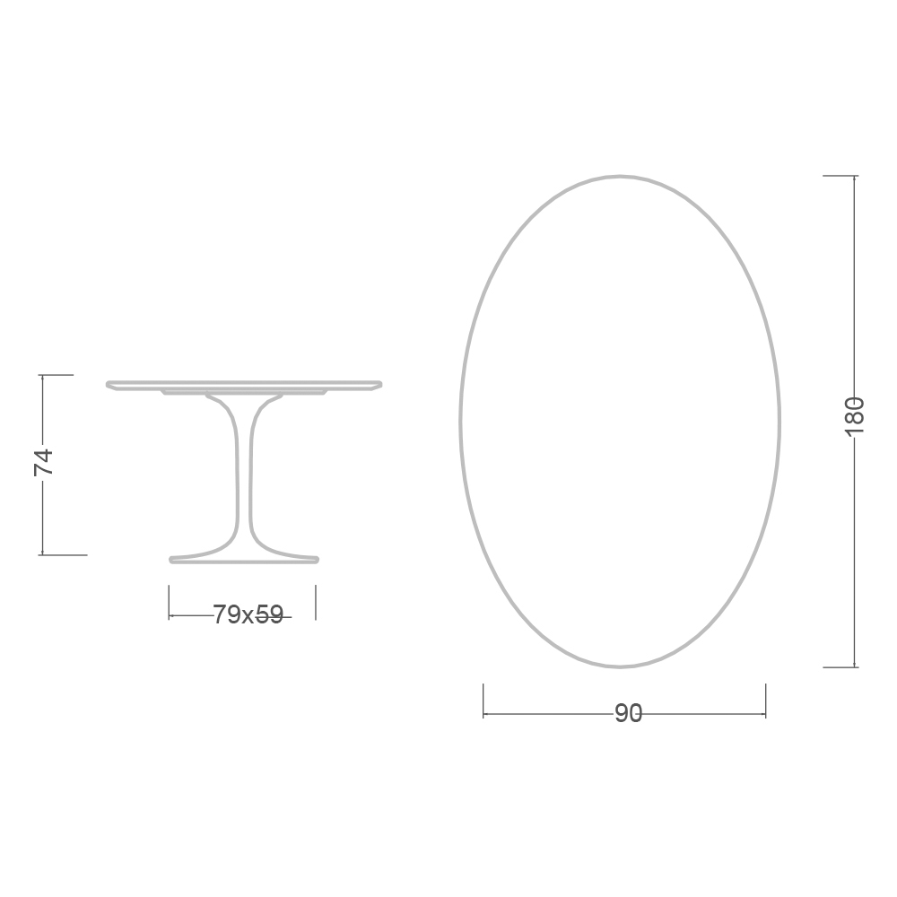 - Deska stolu: 224 x 127 / Oválný podstavec: Oválná podnož stolu: 79 x 59 cm x V 73 cm