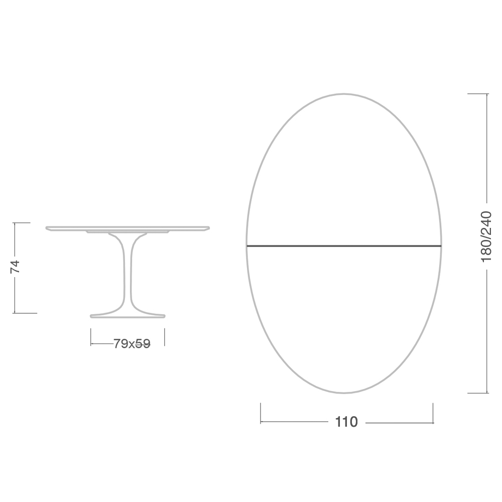 Rozkládací jídelní stůl do 240 cm kompletně vyrobený v Itálii s oválnou deskou z bílého tekutého laminátu a podnoží z bílého leštěného hliníku. Specifický oválný tvar a jednoduché a lineární povrchové úpravy činí z tohoto prvku dokonalý nábytkový doplněk, který lze vložit do každého obývacího pokoje a kuchyně, aby byl moderní a originální . Je ideální pro pozvání hostů díky možnosti rozšíření a tvaru podstavce, který umožňuje vložení několika židlí, přičemž zůstává elegantní a inovativní . Materiály použité na konstrukci dodávají tomuto stolu kvalitu a odolnost i s odstupem času, což z něj činí dokonalý prvek pro všechny akce a příležitosti použití.