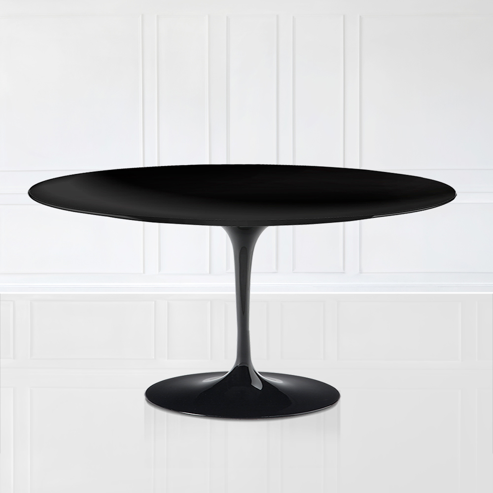 Jídelní stůl kompletně vyrobený v Itálii s oválnou deskou z černého tekutého laminátu a podnoží z černého leštěného hliníku . Tento stůl se přizpůsobí každému typu příležitosti použití a každému typu designu. Inovativní oválný tvar je ideální pro více hostů a tvar základny je vynikající pro vložení několika židlí. Díky svým jednoduchým a elegantním povrchovým úpravám a liniím jej lze začlenit do všech stylů nábytku, od moderního přes šik až po retro. Tento prvek je vítězným nápadem pro ty, kteří rádi zařizují každý pokoj v domě s vkusem a originalitou .