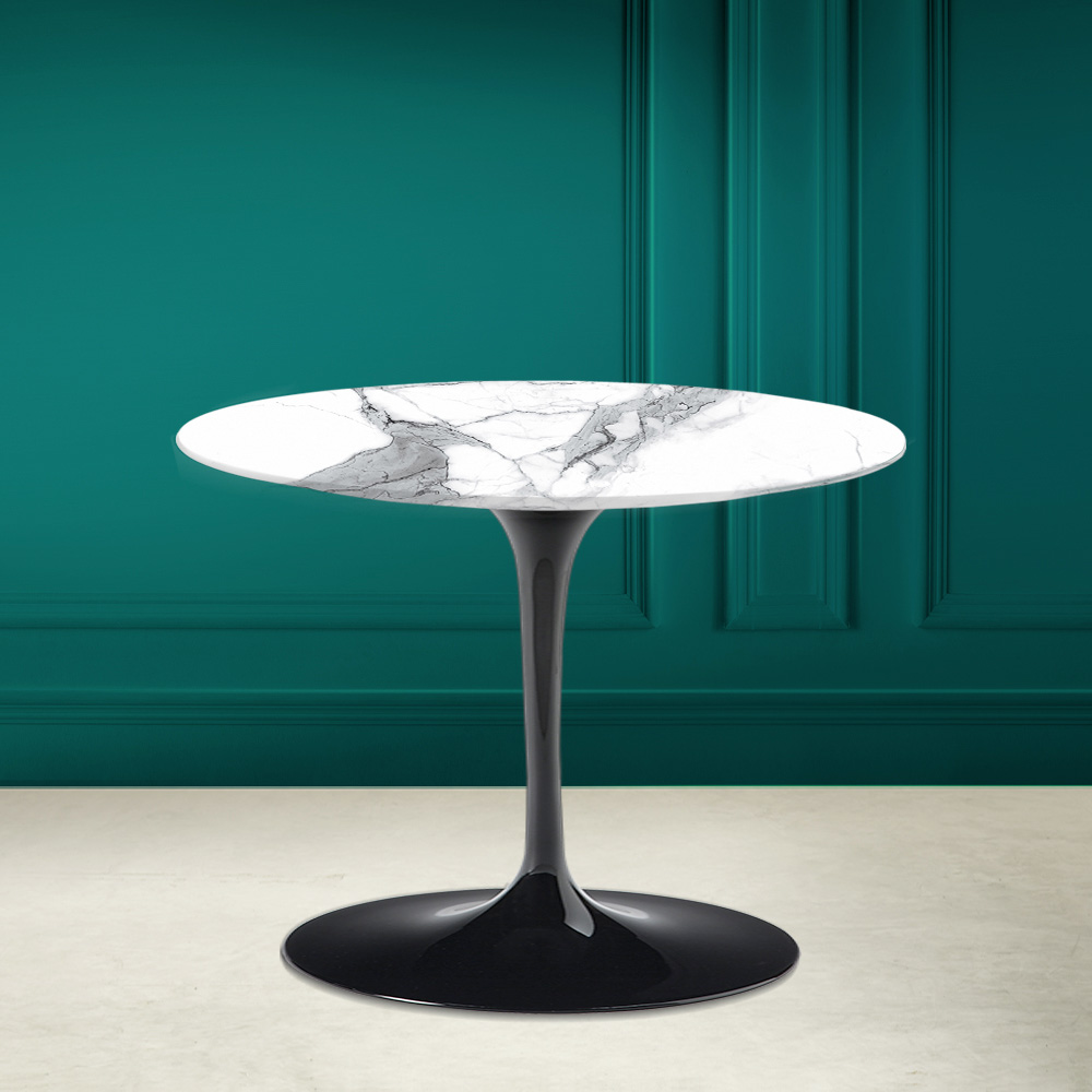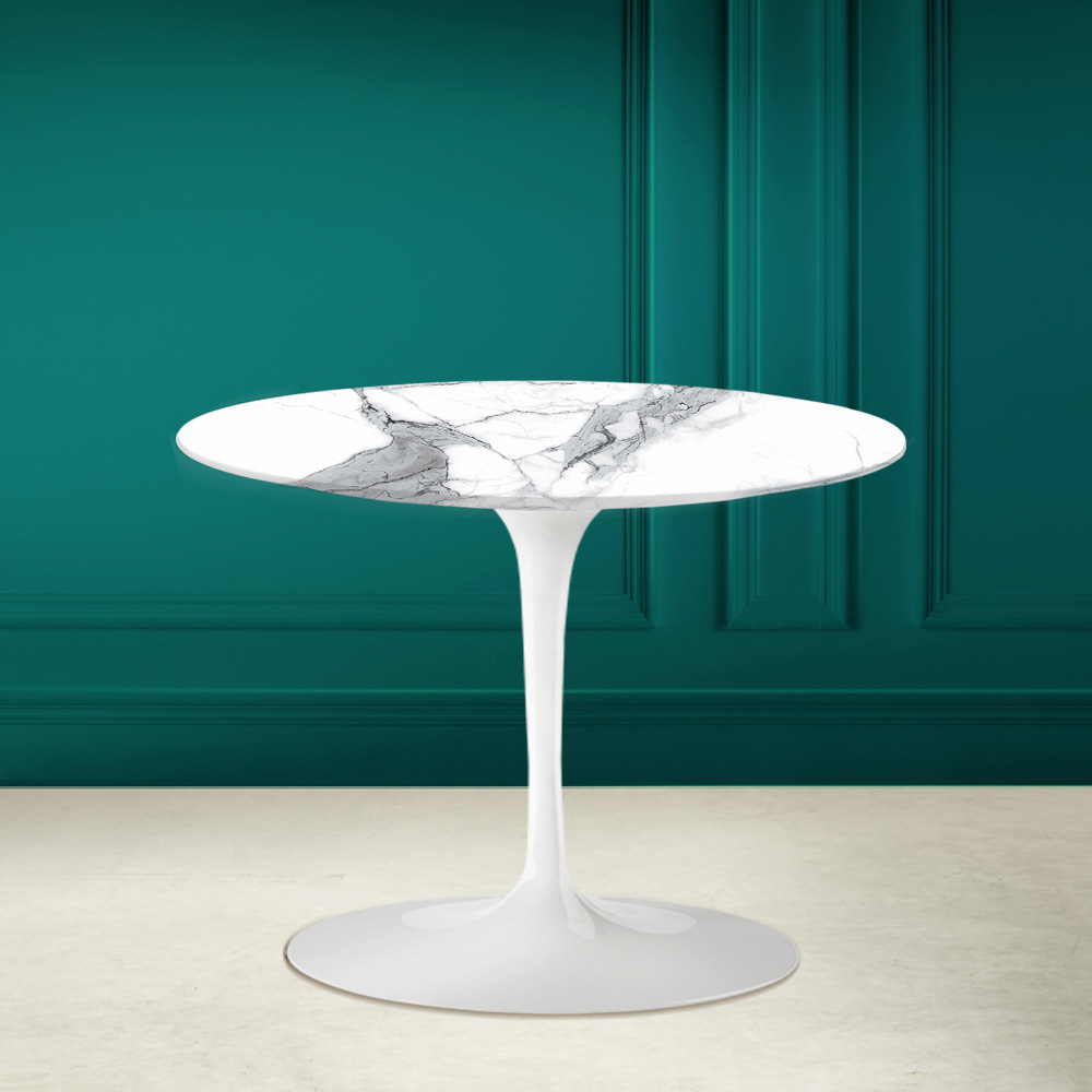 Velmi vysoký statuario keramický kulatý konferenční stolek Made in Italy