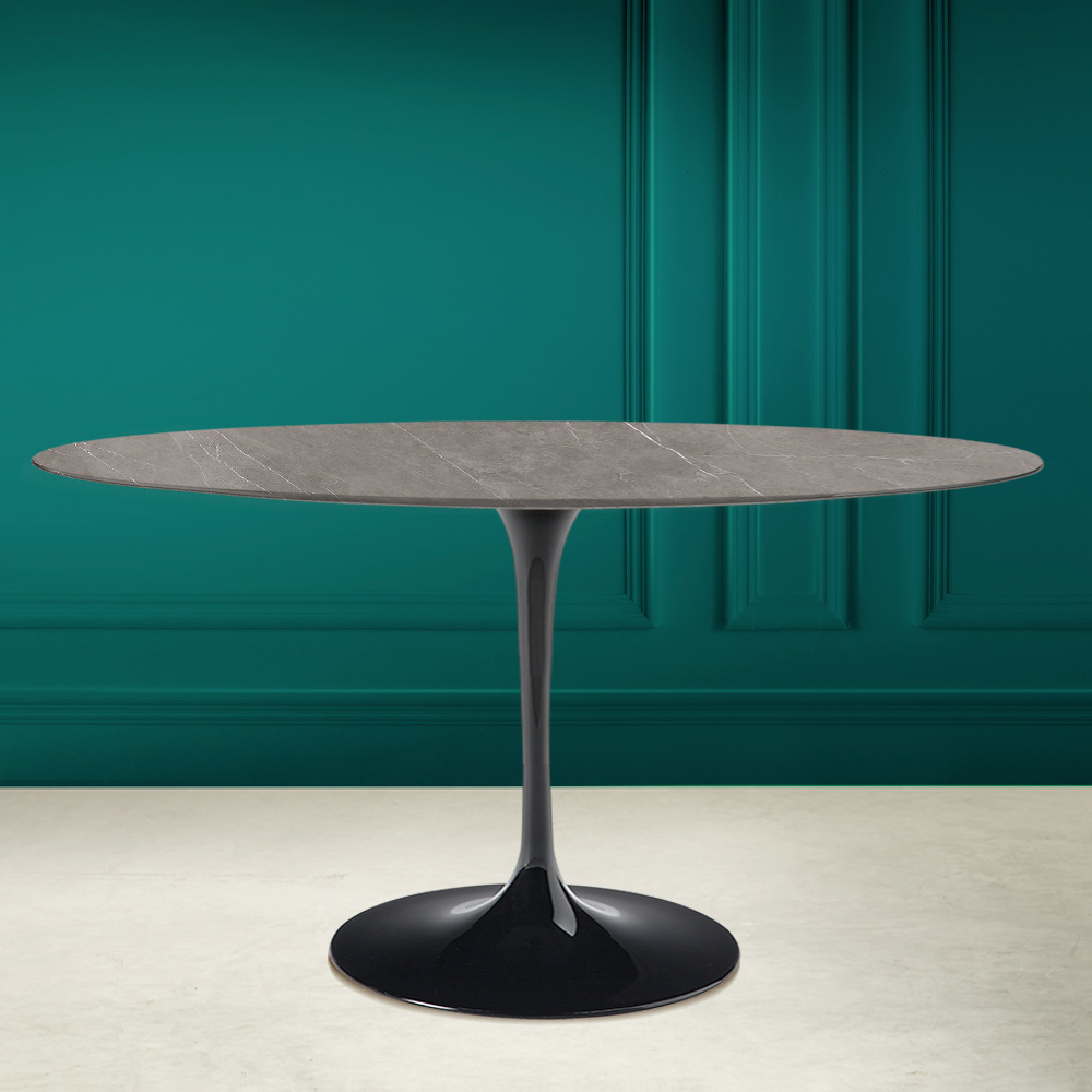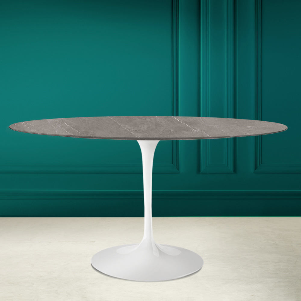Jídelní stůl s oválnou deskou z šedé kamenné keramiky Made in Italy