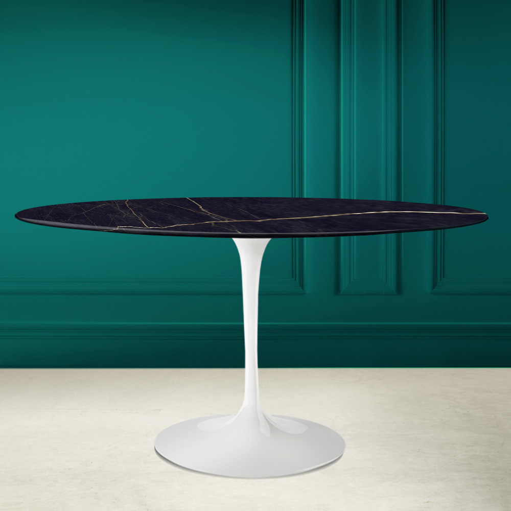 podstavou z leštěného hliníku. Tento stůl je díky oválnému tvaru a keramice noir laurent dokonalým prvkem, který dodá originální nádech každému obývacímu pokoji a kuchyni.