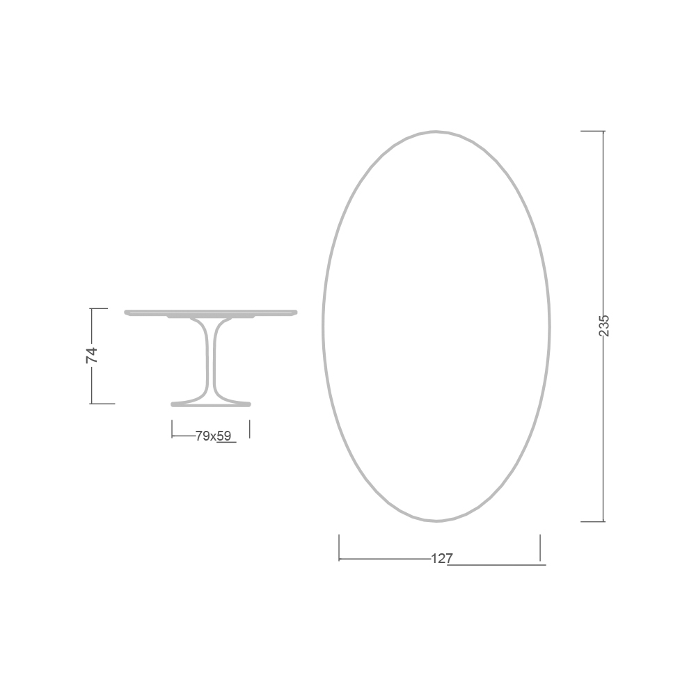 - Horní část: 235 x 127 - Podstavec: 79 x 59 - Výška 74 cm;