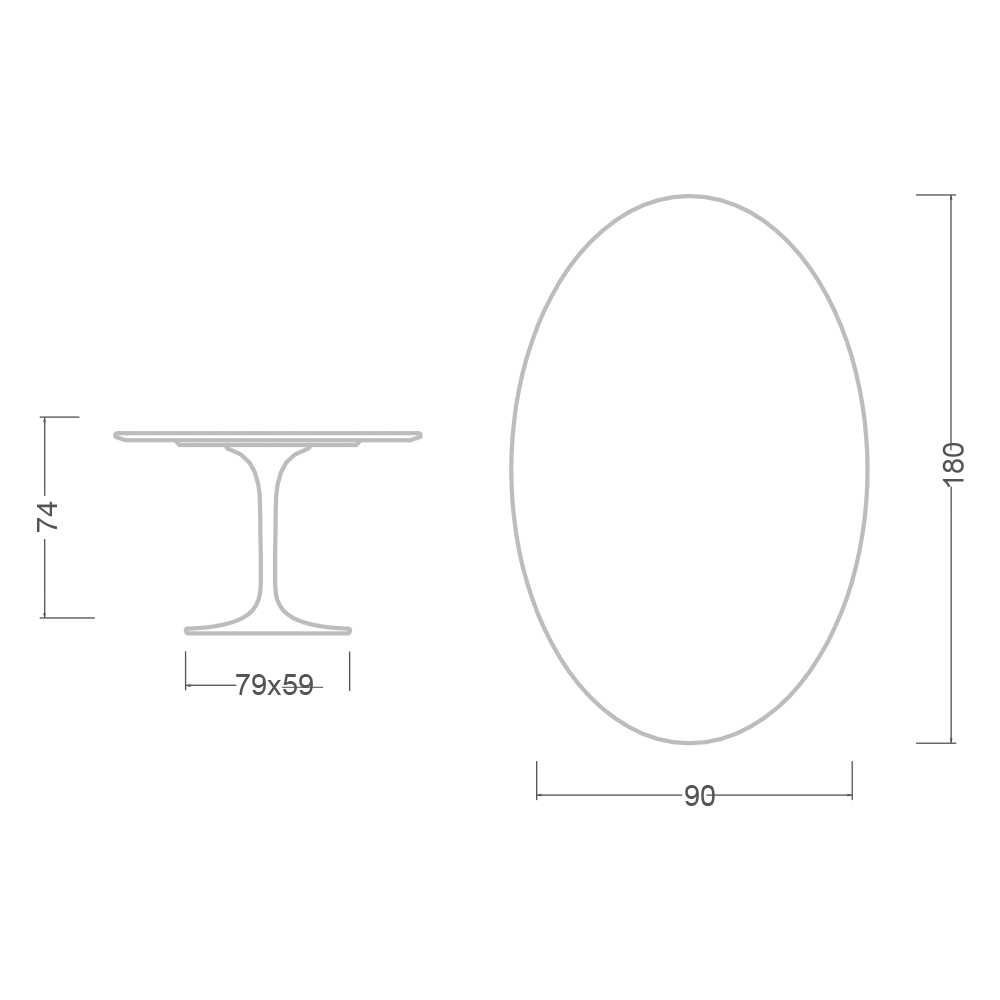 - Deska stolu: 224 x 127 / Oválný podstavec: Oválná podnož stolu: 79 x 59 cm x V 73 cm
