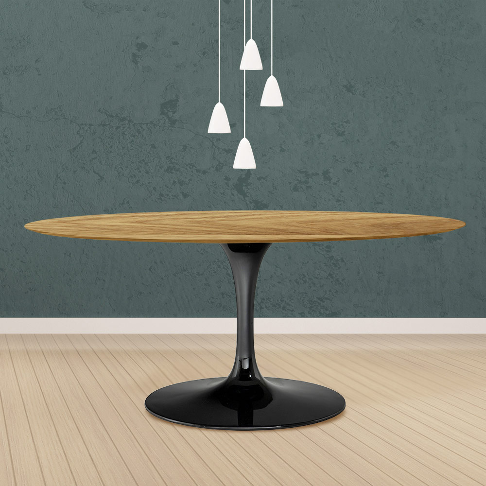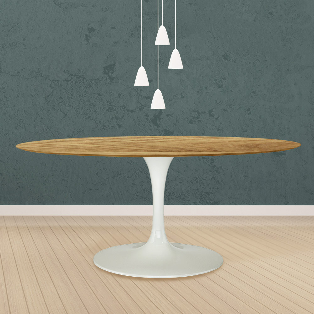 Oválný jídelní stůl z přírodního dubu a podnože z leštěného hliníku Made in Italy