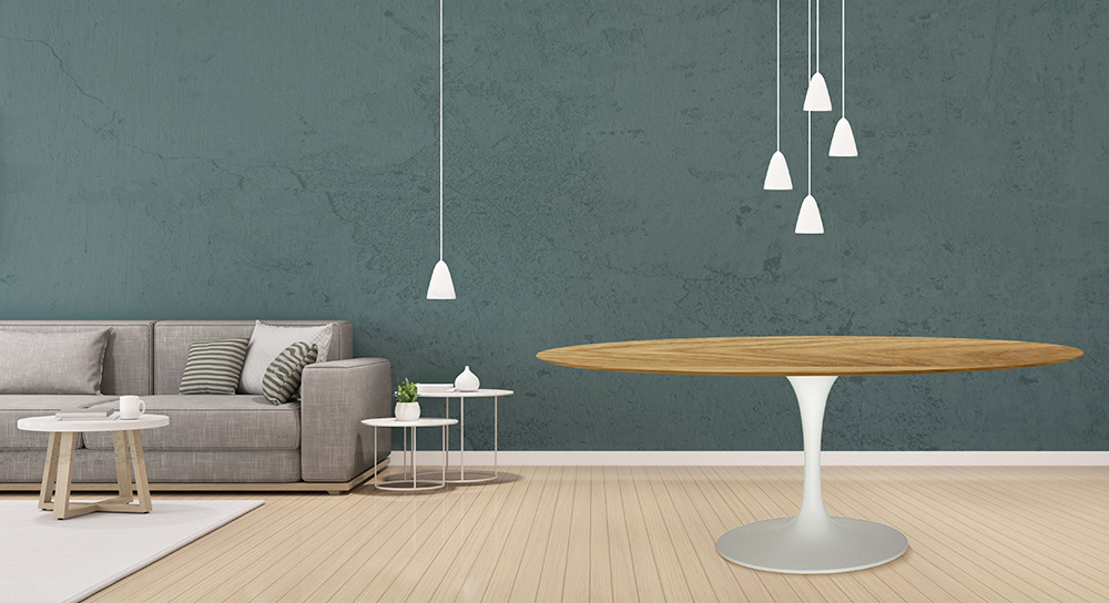 oválného tvaru a desky z přírodního dubu dodává tomuto stolu