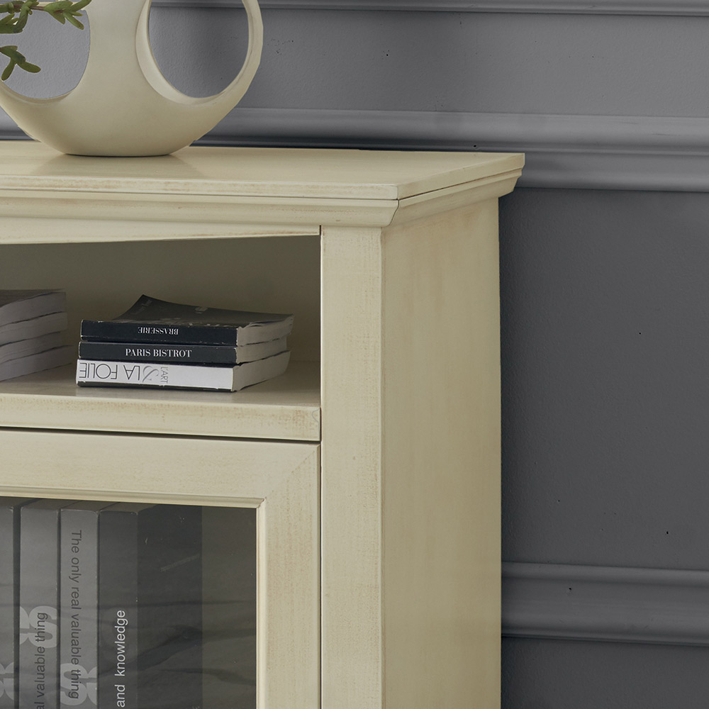 2 skleněnými dvířky a 3 otevřenými přihrádkami kompletně
