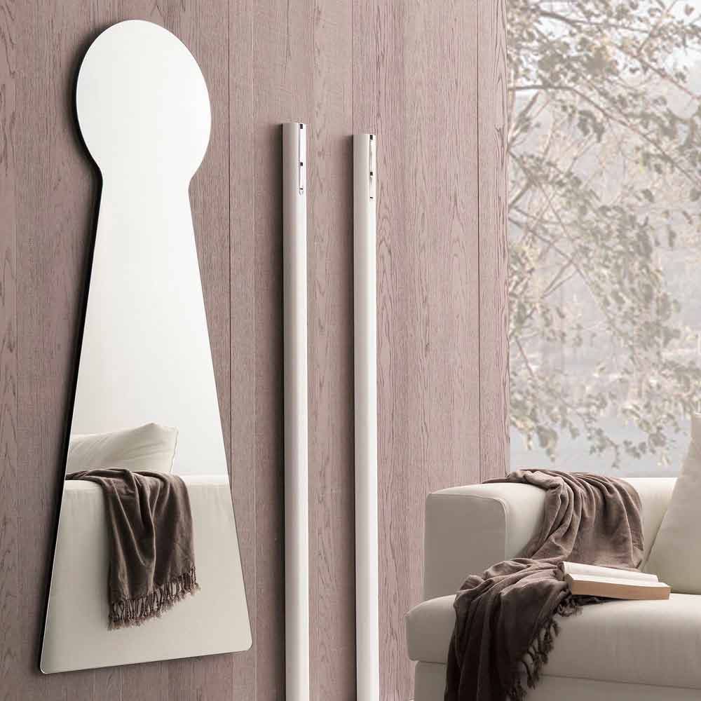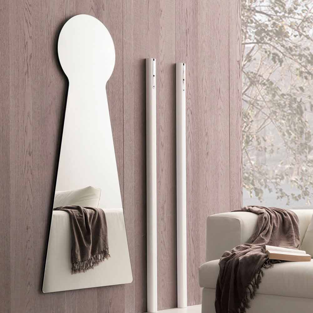 Originální tvarované nástěnné zrcadlo vyrobené v Itálii s melaminovým panelem zpětného zrcátka. Tento kus nábytku má mimořádně kreativní a avantgardní design a bezchybně se přizpůsobuje každé situaci v moderním zařizování, v níž dokáže charakterizovat prostředí, čímž je světlejší a prostornější. Díky svým impozantním rozměrům je obzvláště vhodnou volbou pro velké pokoje s velkými stěnami, které naplní nádechem osobnosti a jedinečného stylu. Zrcadlo představuje eklektický a obzvláště všestranný doplněk, schopný transformovat a zlepšit vnímání jakéhokoli prostředí. Představuje základní prvek, který dokáže opticky zvětšit prostory a zároveň působí jako důležitý světelný bod.