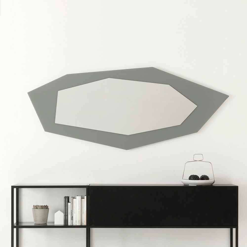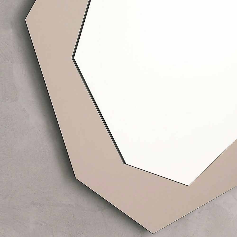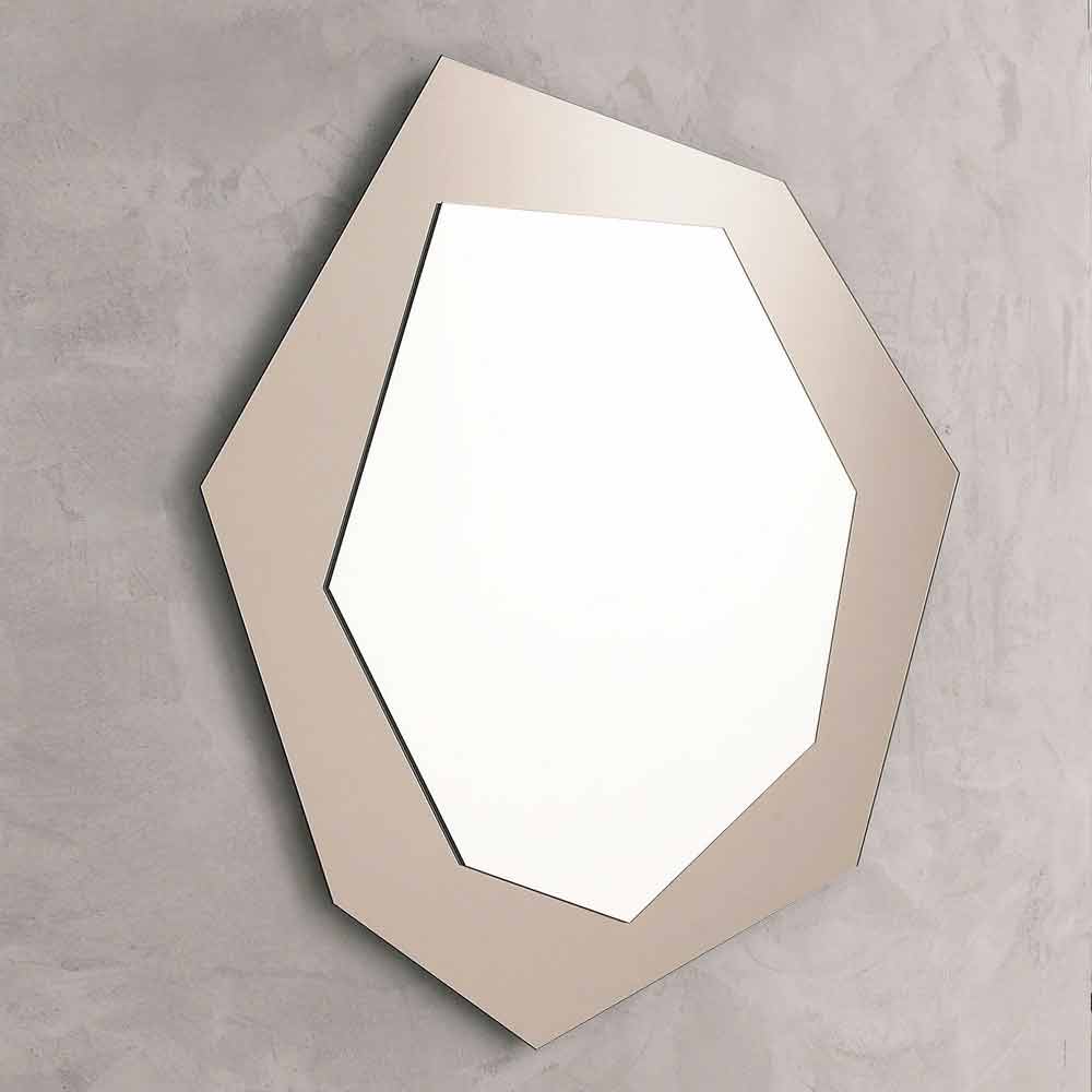 Tvarované nástěnné zrcadlo vyrobené v Itálii s rámem z kouřového nebo bronzového skla. Kreativní a eklektický doplněk, který dokáže transformovat jakékoli prostředí zlepšením jeho vnímání a působením jako základního světelného bodu v místnosti, čímž dokáže opticky zvětšit prostory. Originálnost jejích tvarů je kombinována s elegancí dostupných povrchových úprav, což vytváří řešení vybavení schopné naplnit velké stěny jedinečným dekorativním prvkem s vytříbeným stylem . Dvě dostupné velikosti umožňují tomuto zrcadlu reagovat na všechny typy požadavků a potřeb, dokáže obohatit vybavení každé místnosti o moderní vkus, a tím prokazuje extrémní všestrannost.