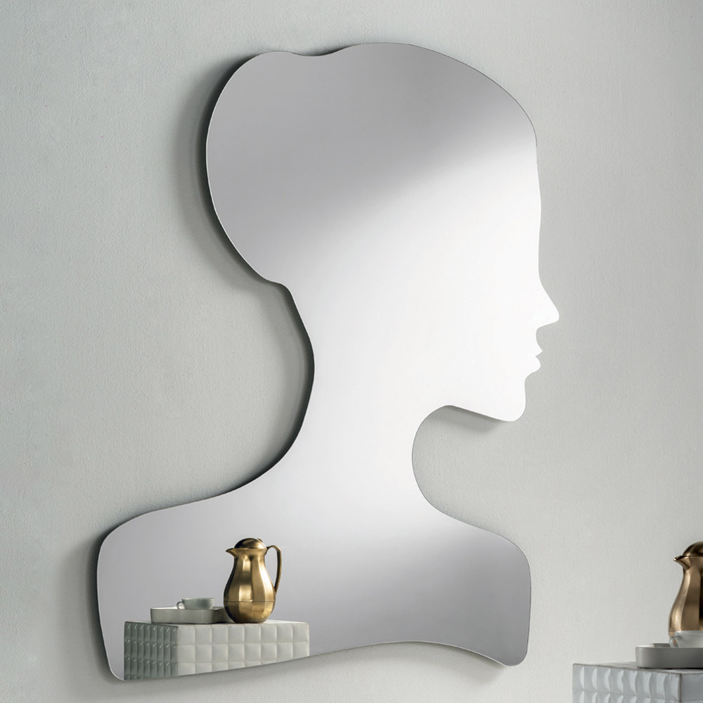Tvar zrcadla reprodukuje stylizovaný profil ženské tváře , charakterizovaný nařaseným drdolem , štíhlým krkem a odhalenými rameny . Tato jemná silueta vytváří elegantní a dramatický dojem a proměňuje zrcadlo v bytový prvek se silným vizuálním dopadem.