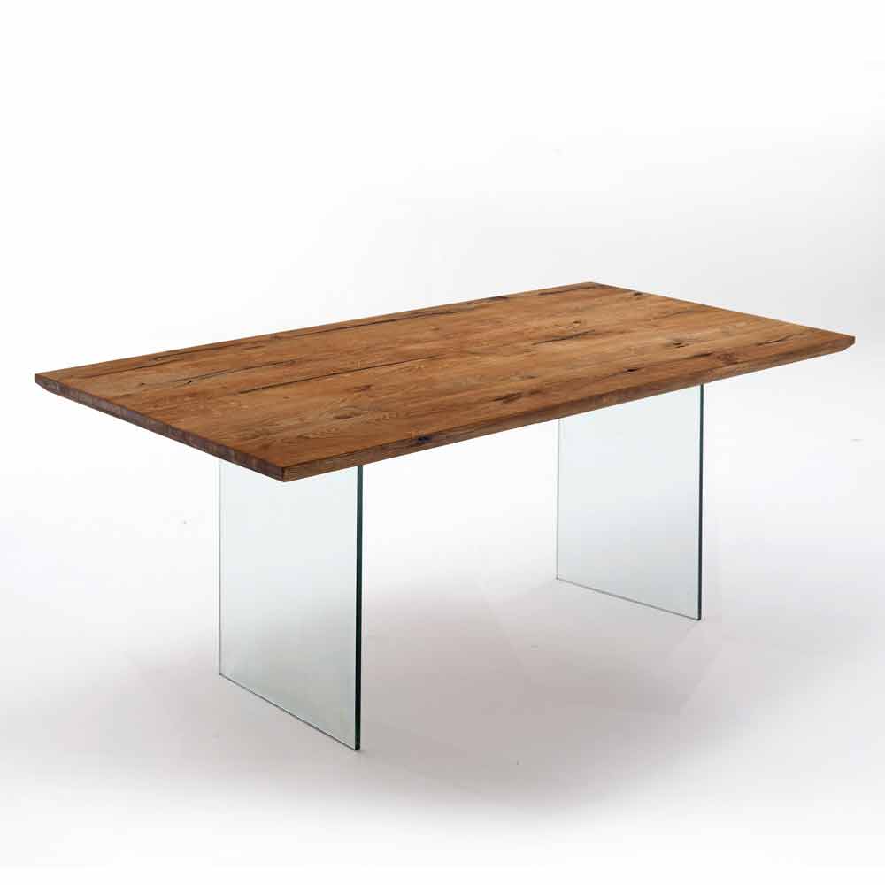 Pevná dřevěná stůl a pevné nohy Tito tvrzené sklo