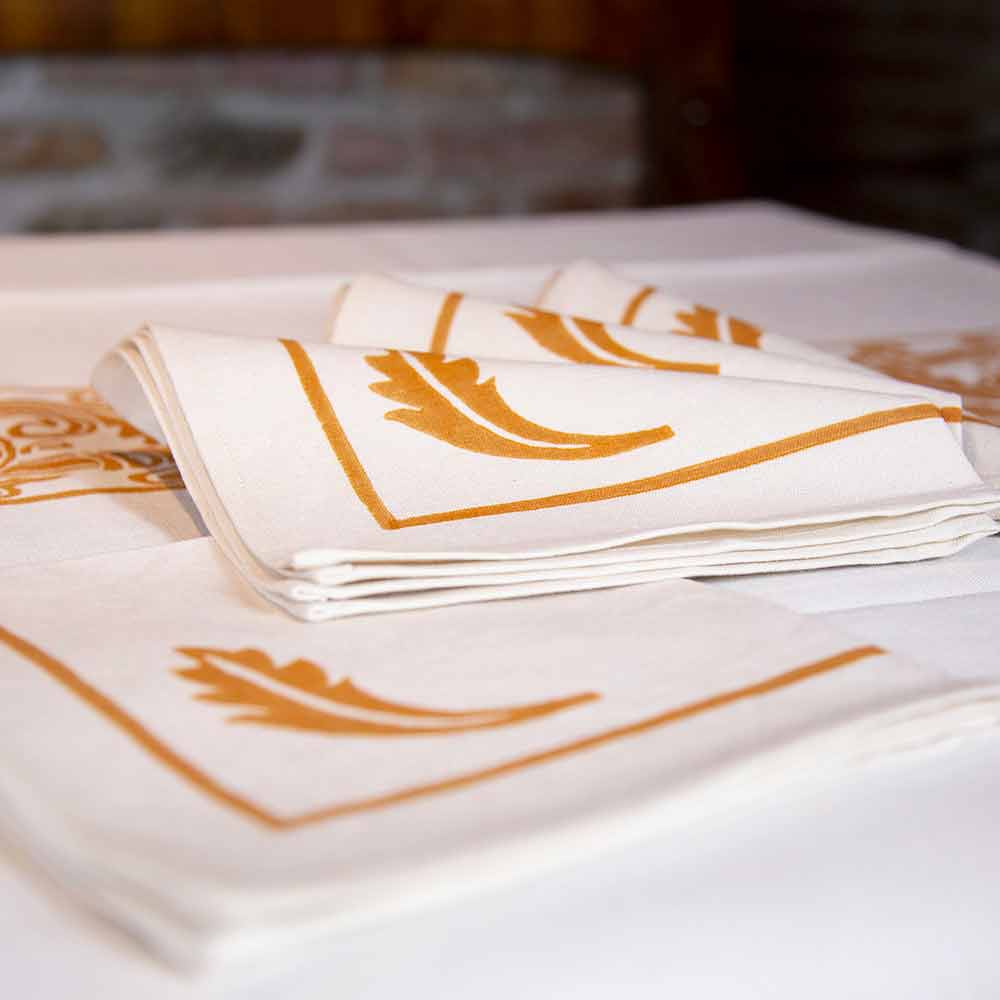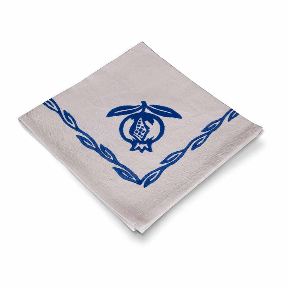 Ubrousek z vysoce italského řemesla v lnu a bavlně, vyrobený starodávnou výrobní technikou s uměleckým potiskem na jemné látky, rez nebo modrý design, jedinečný kus.