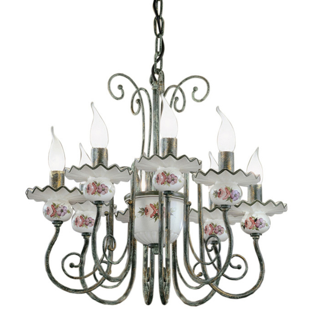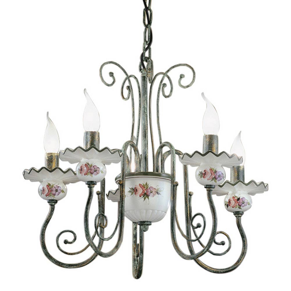 Ručně vyrobený mosazný a ručně malovaný keramický lustr ve 3 velikostech vyrobený v Itálii společností Ferroluce.