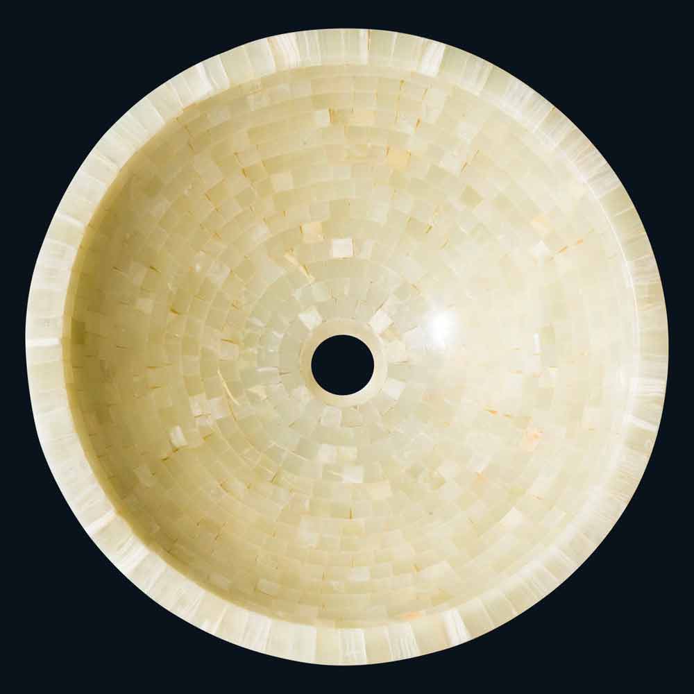Kulaté umyvadlo na desku v medovém onyxovém kameni Kilian