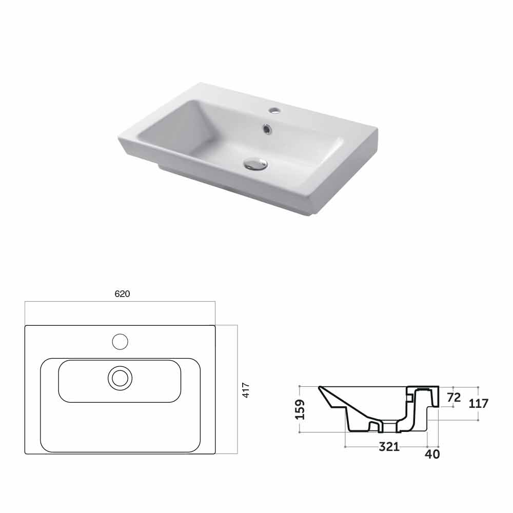 Umyvadlo na pracovní desku a na stěnu se vyznačuje